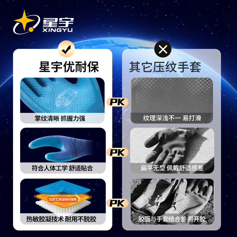半挂全包橡胶发泡劳保压纹手套乳胶防滑耐磨防水透气防护防割批发