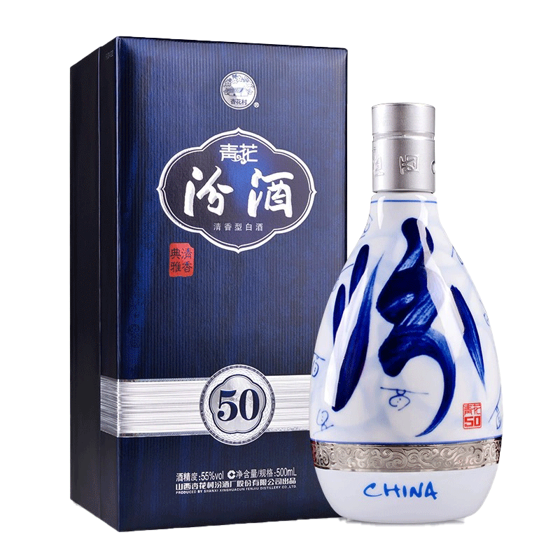 汾酒山西杏花村汾酒55度青花50汾酒清香型白酒500ml 1礼盒送礼