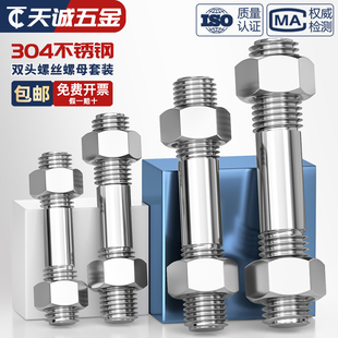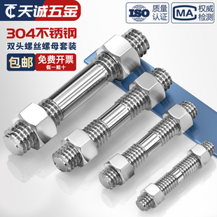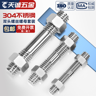 不锈钢304双头螺丝螺母套装 组合两头牙螺栓丝杆螺M6M8M10M12M16mm