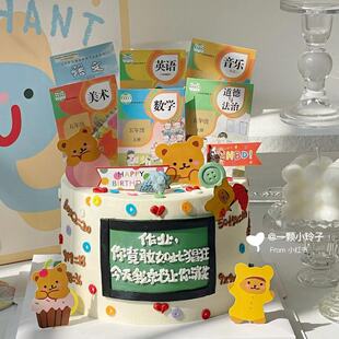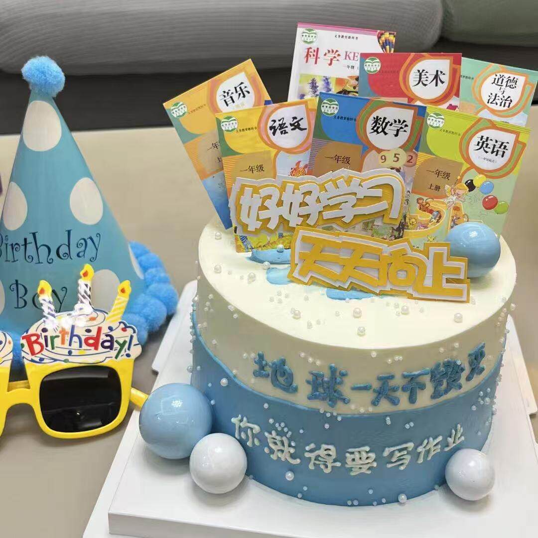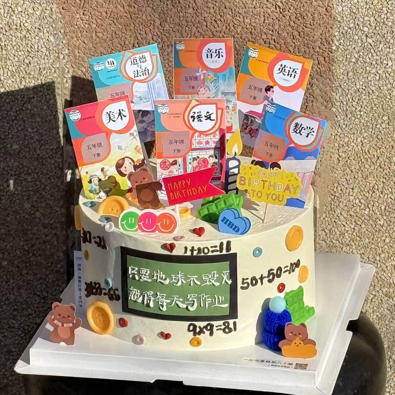 饰好好学习天天向上烘焙装 毕业季 9年级课本蛋糕装 扮插牌 升学季