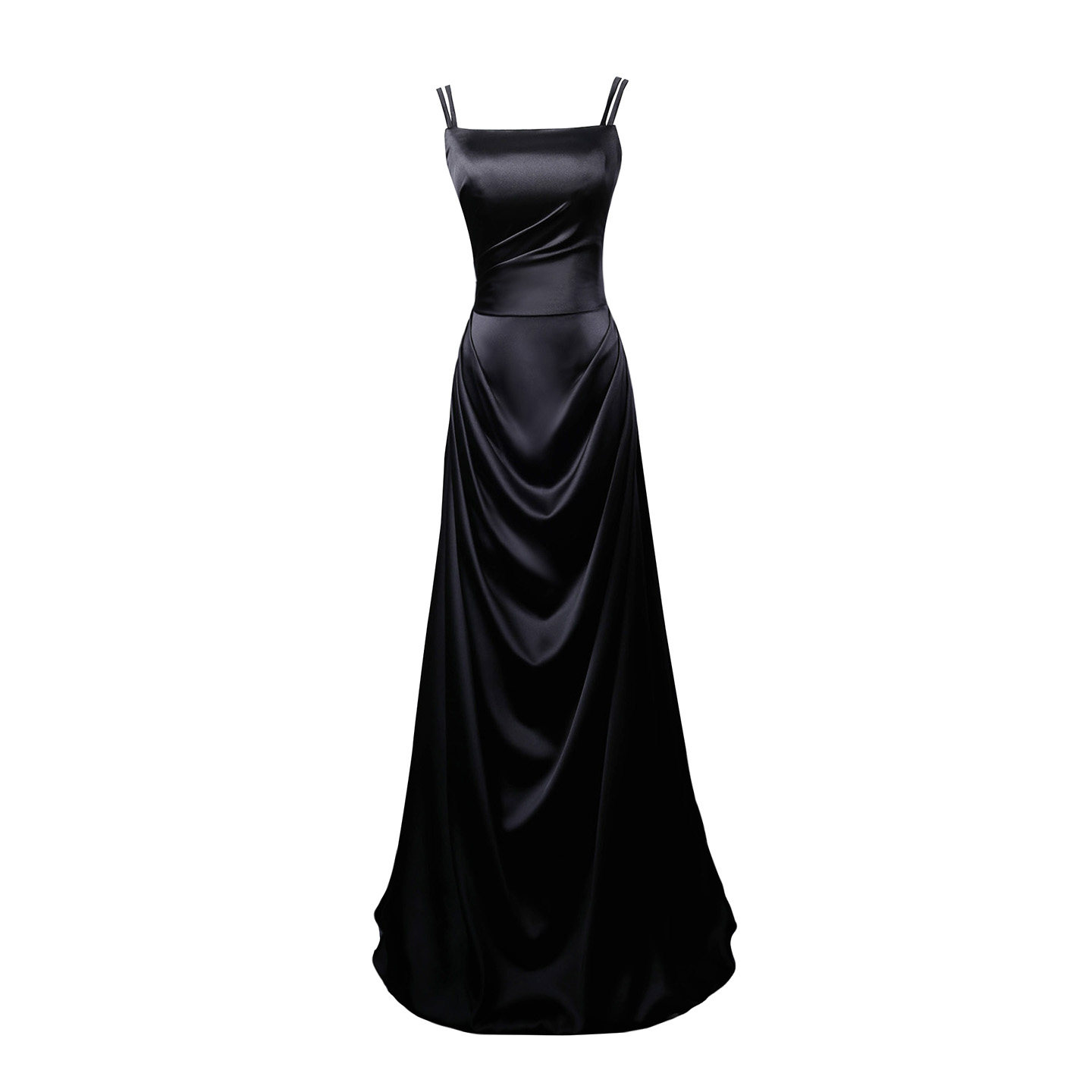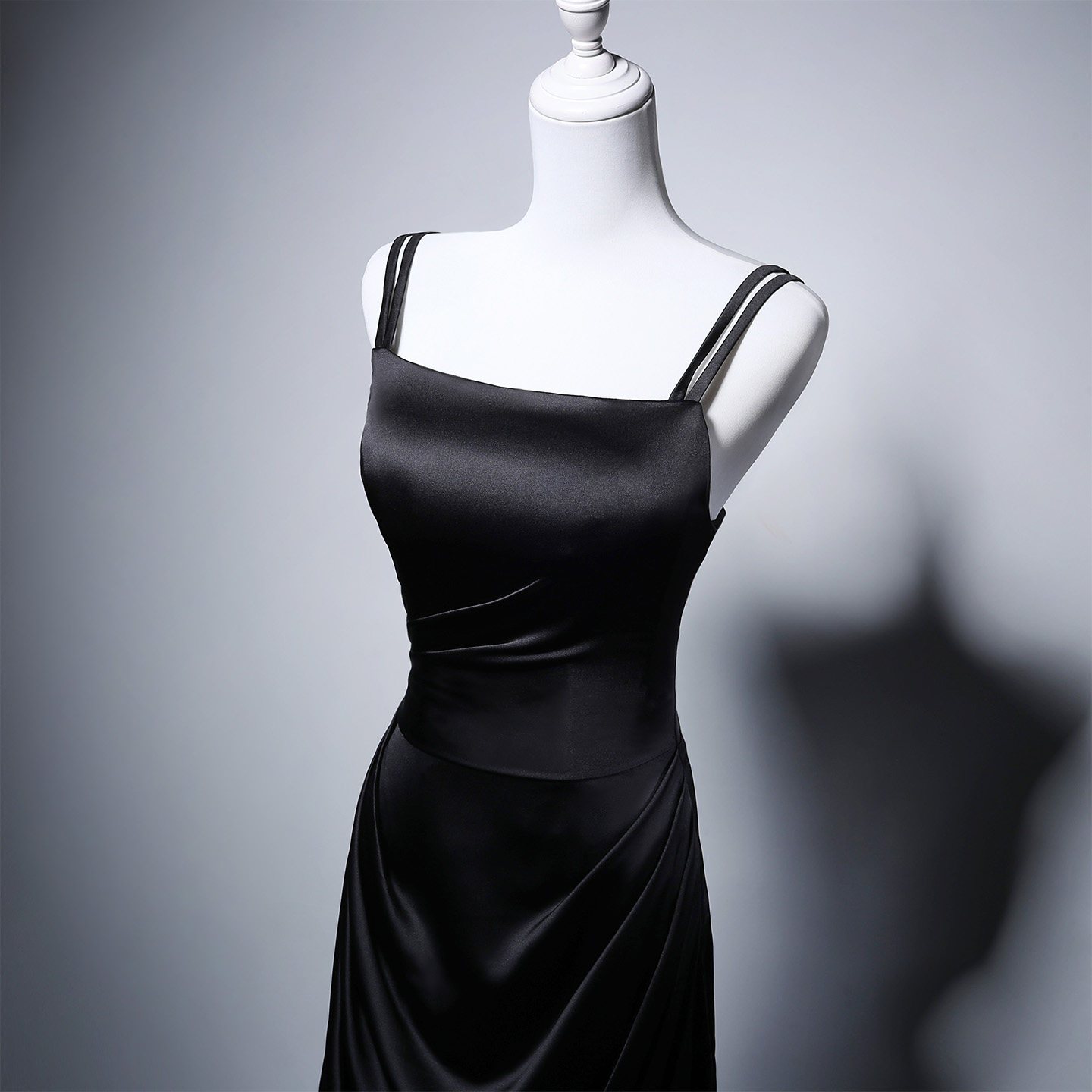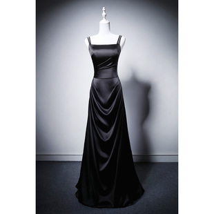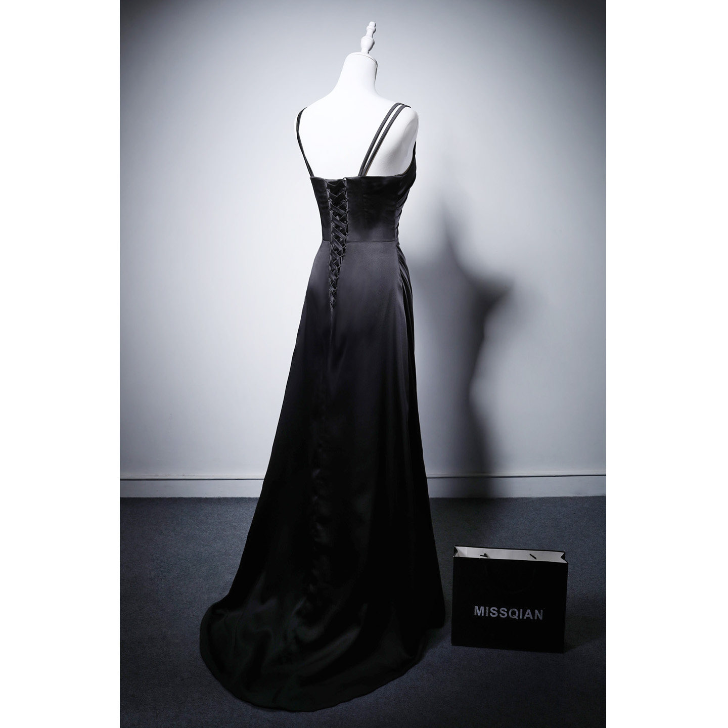 MISSQIAN 黑色西太后缎面吊带收腰A字裙生日成人礼主持年会晚礼服