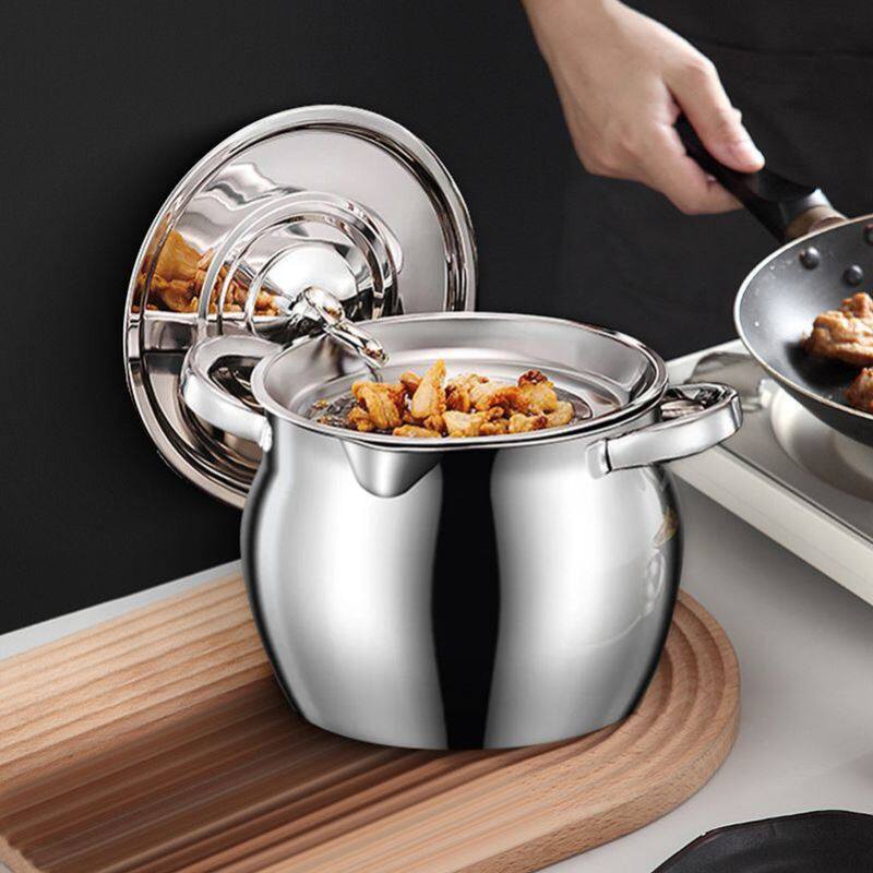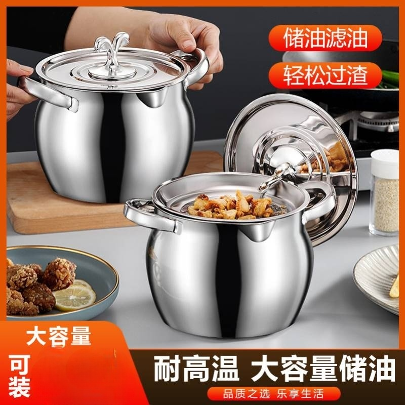 3件套带滤网猪油罐桶双耳猪油锅不锈钢带盖防尘家用大容量油罐