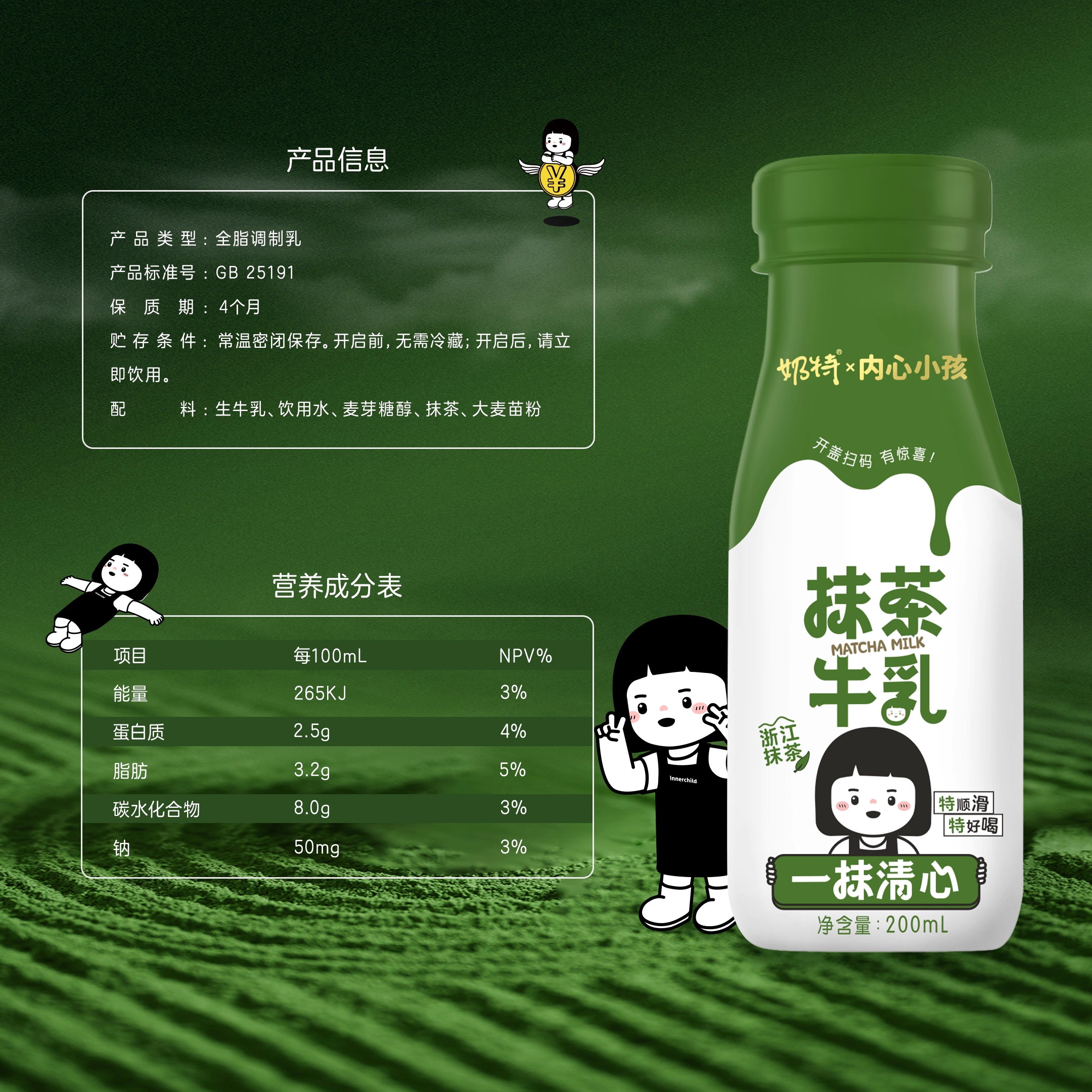 2瓶 蒙牛奶特抹茶牛乳抹茶味全脂调制乳PET瓶200ml 顺