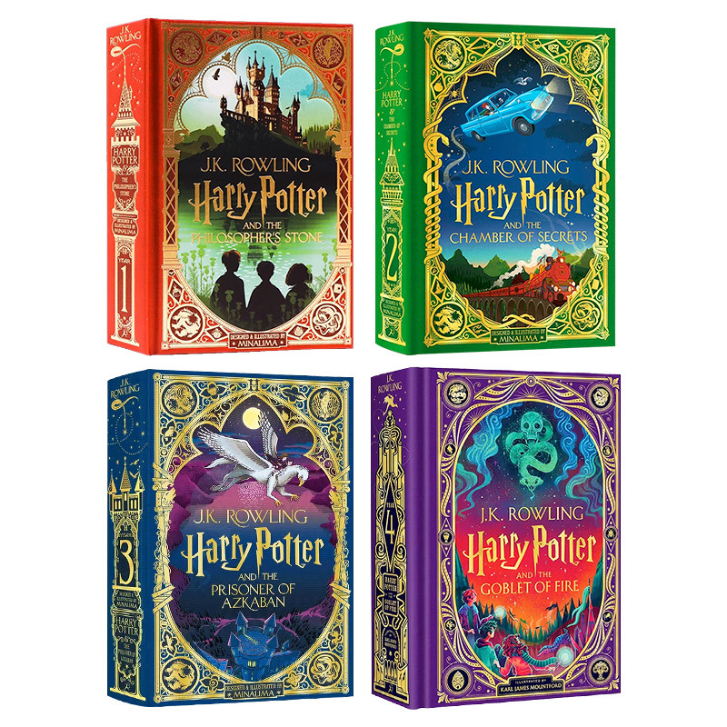 JK罗琳 全彩互动书4册套装 Harry MinaLima 火焰杯 4魔法石 英版 阿兹卡班 Potter 囚徒 英文原版 哈利波特精装 周边小说 密室