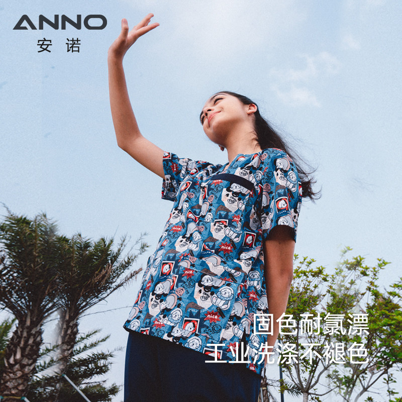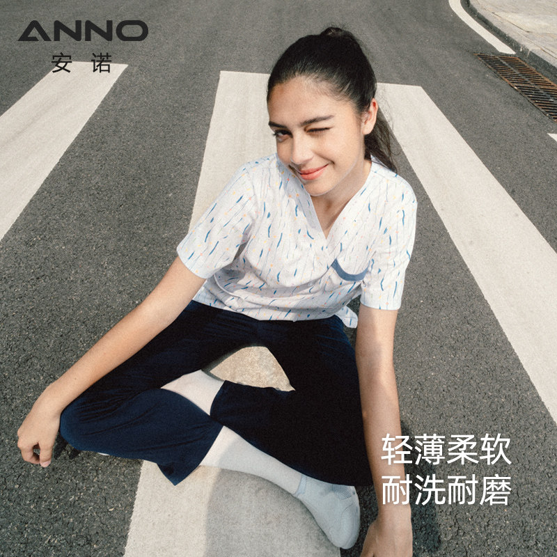 安诺印花洗手服护士服手术室衣服隔离衣男女口腔诊所制服短袖