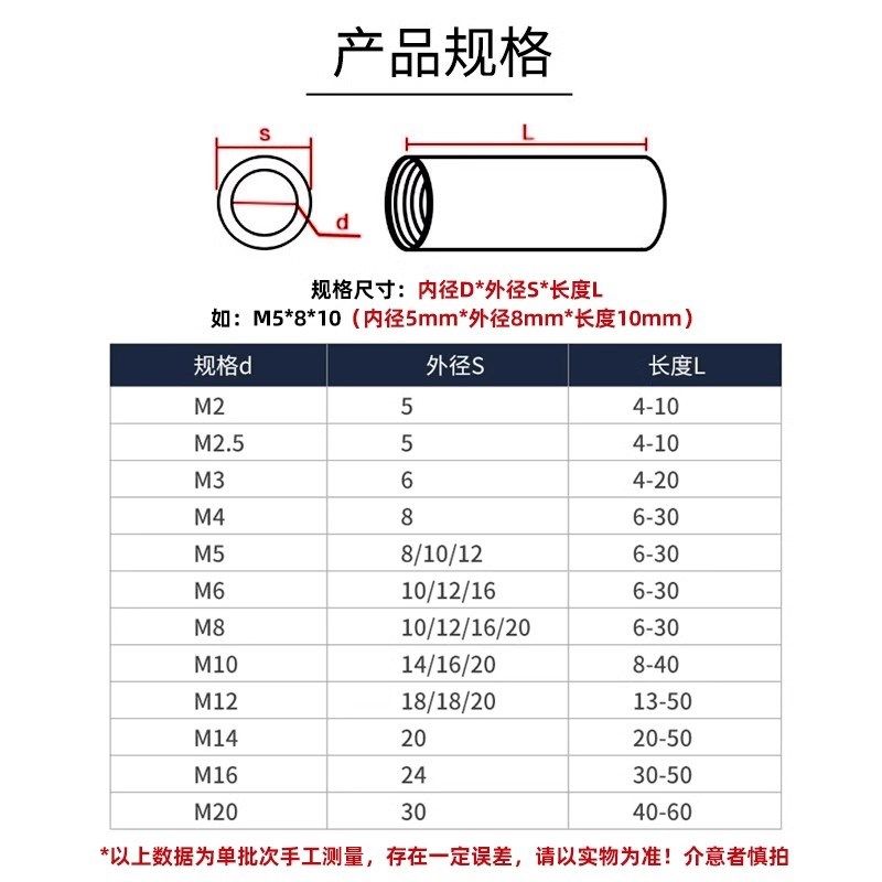 双通不锈钢六角柱延长圆形型加长螺母柱连接柱支撑柱M2M3M4M5M6M8