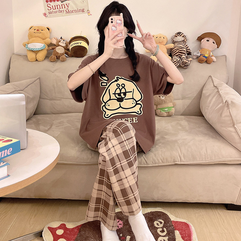 奶酪番茄 长袖 格纹纯棉睡衣女款 新款 可外穿家居服套装 春秋冬季