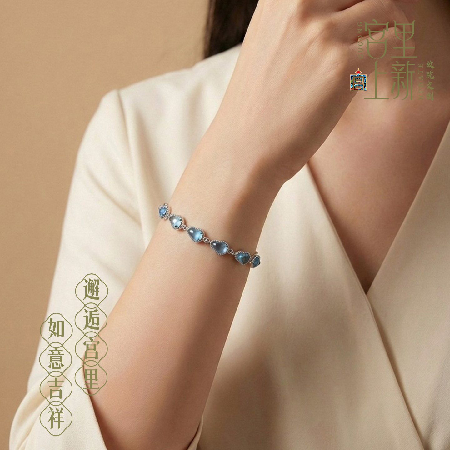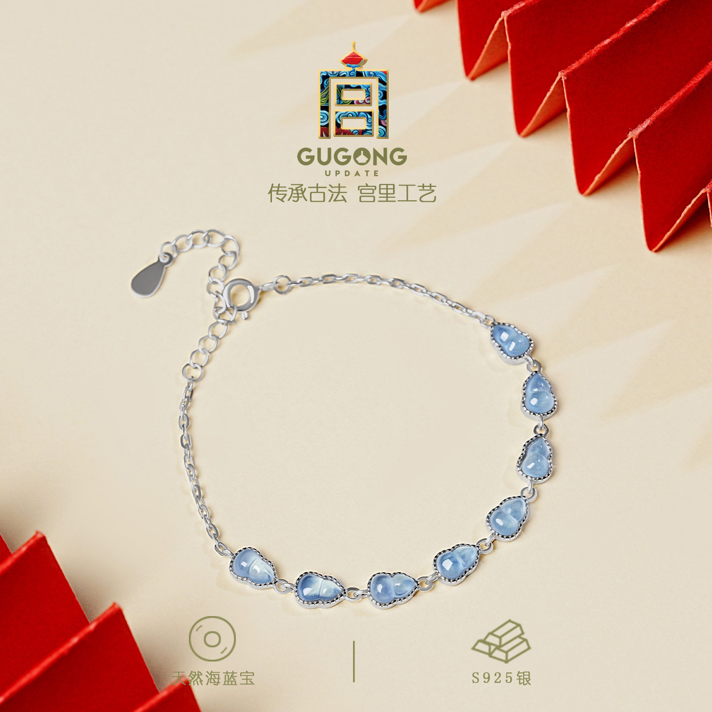 宫里上新海蓝宝葫芦手链女款 纯银天然蓝水晶手饰高级感生日礼物
