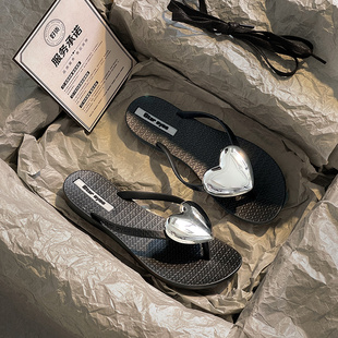 休闲外穿海边沙滩夹脚凉鞋 官方正品 2025新款 夏季 潮 爱心人字拖女款