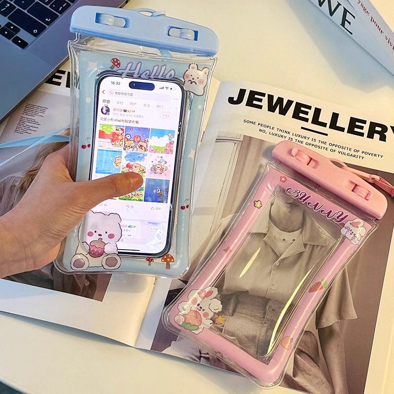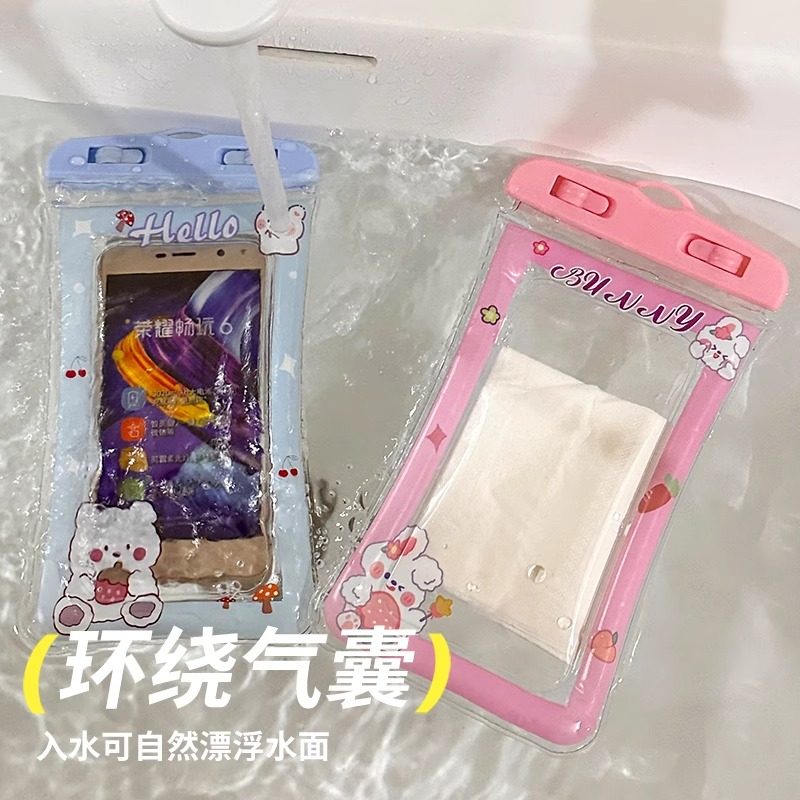 可爱气囊手机防水袋可触屏游泳漂流拍照密封手机套海边潜水套挂脖