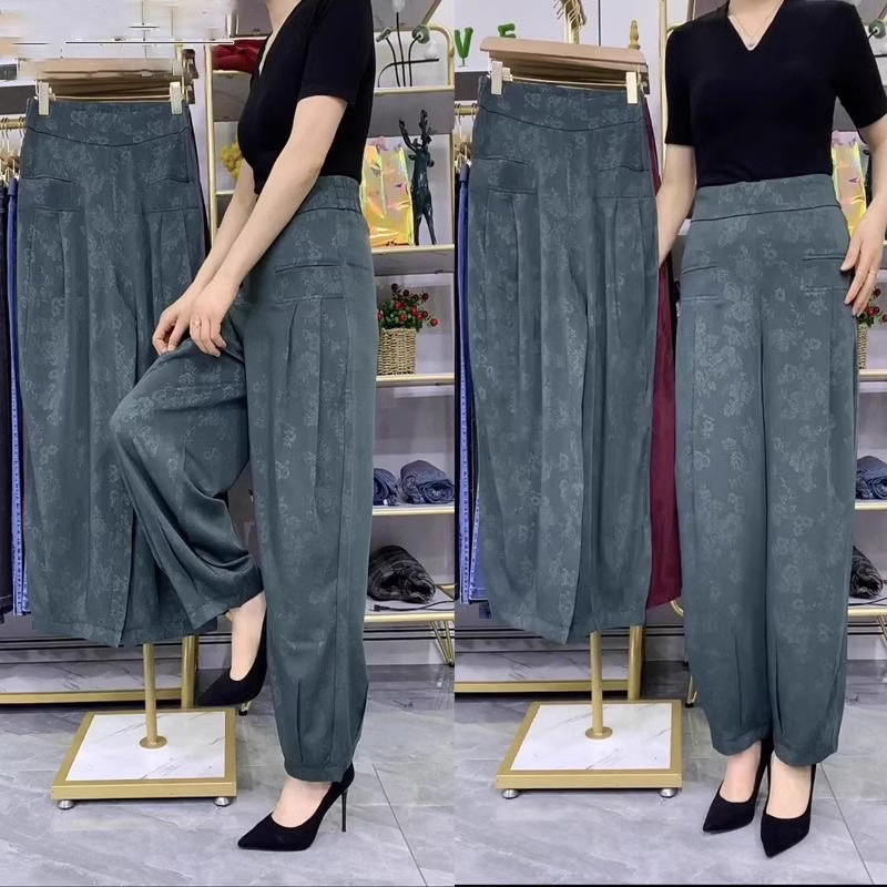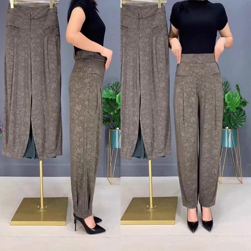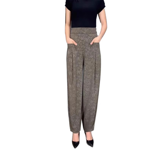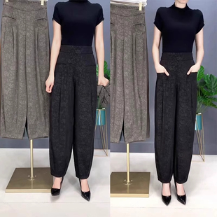 妈妈高腰九分哈伦休闲萝卜裤 夏季 灯笼裤 清仓捡漏女士冰丝提花大码