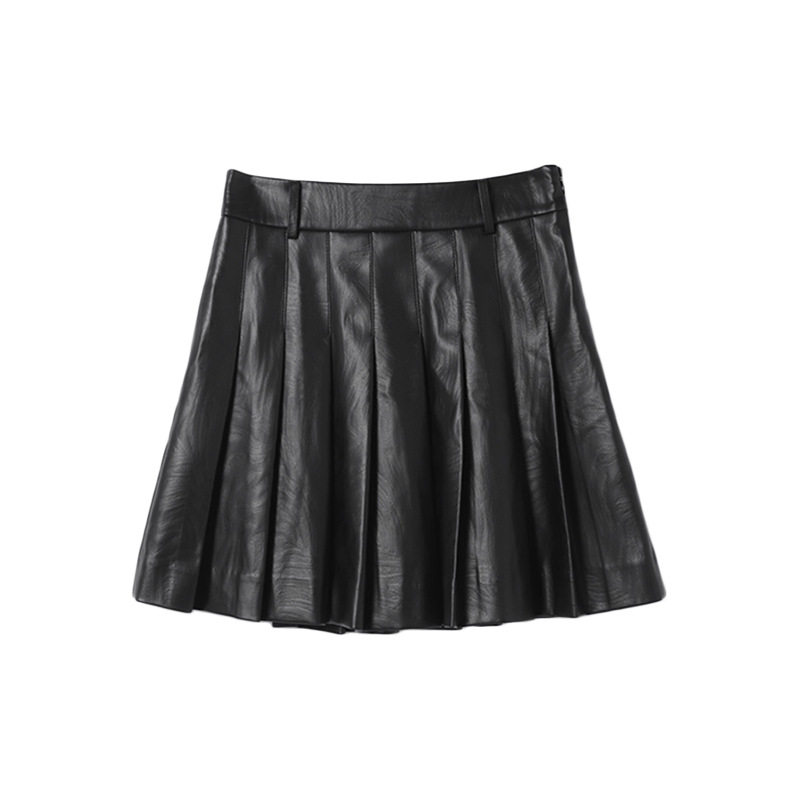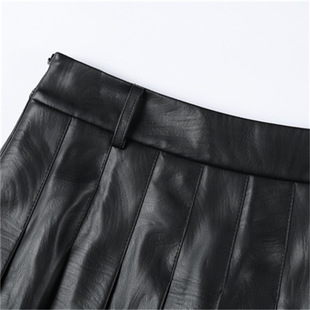 一线大品牌撒柜清仓折扣女装 L282 高端休闲黑色半身裙PU百褶半裙