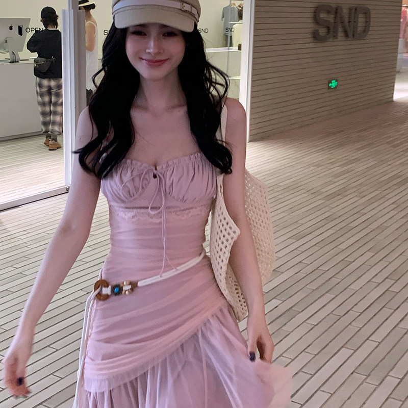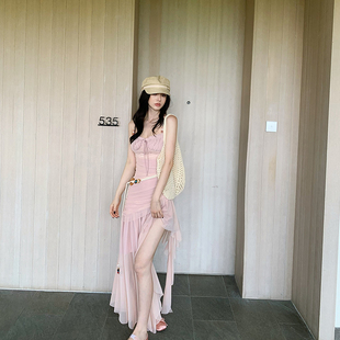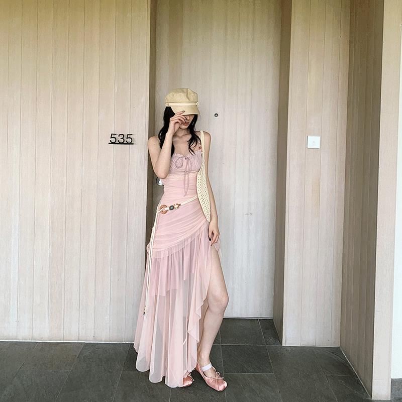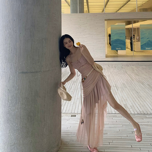 吊带拼接网纱连衣裙女 超仙高腰显瘦不规则长款 Lienni2025新款 无袖