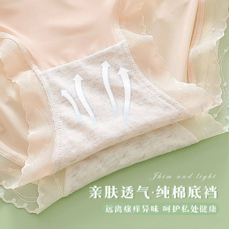 养护型女士内裤 超薄冰丝面膜裤 高级中腰蕾丝边舒适透气少女 款 热卖