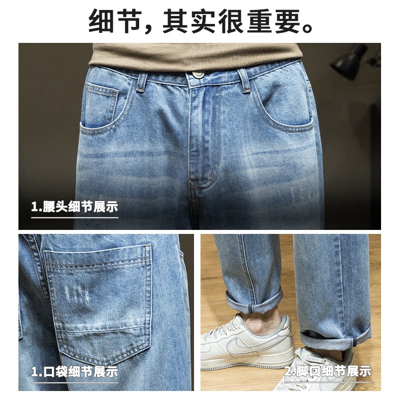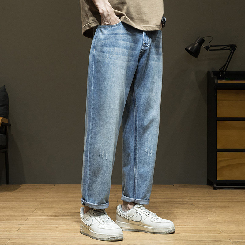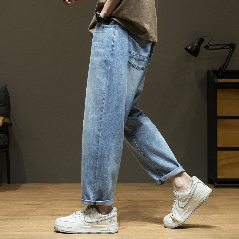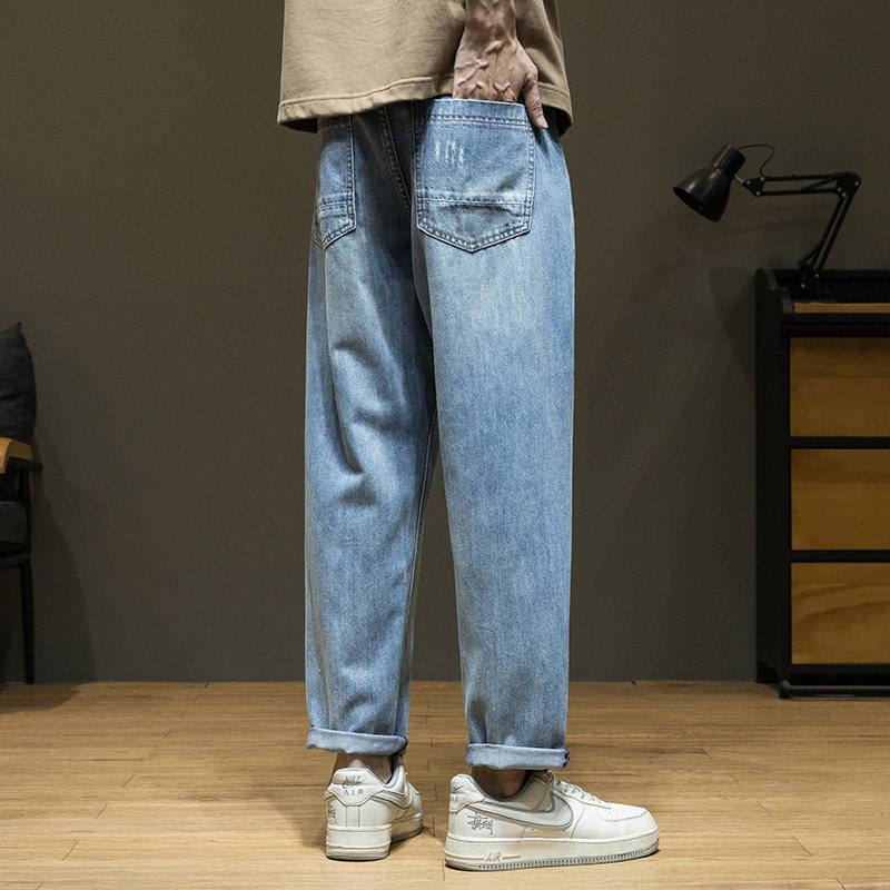 休闲直筒萝卜加绒长裤 宽松大码 子 男春季 天丝莱赛尔锥形九分牛仔裤