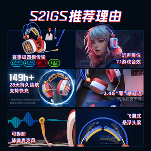 西伯利亚S21GS火焰风暴游戏电竞无线蓝牙耳机头戴式 电脑2.4G耳麦