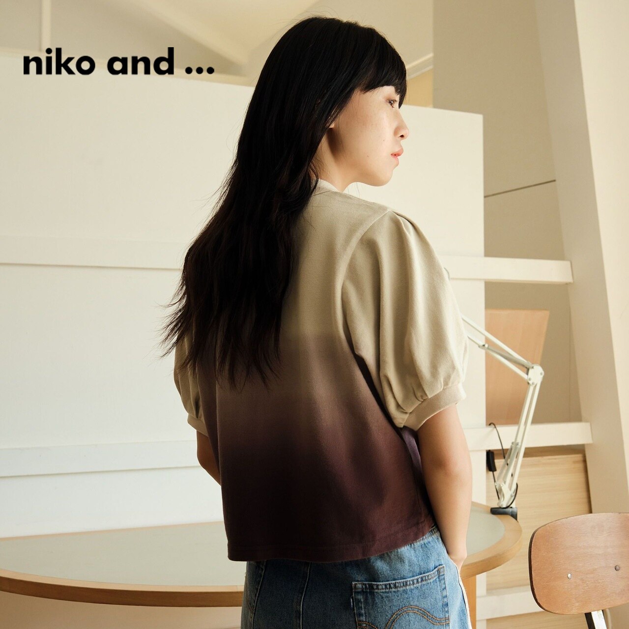 时尚 niko 新款 ...T恤女夏季 潮流渐变色休闲上衣118843 and