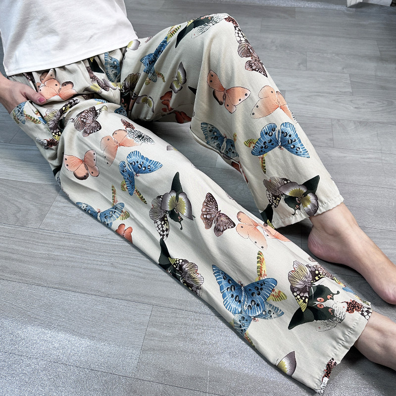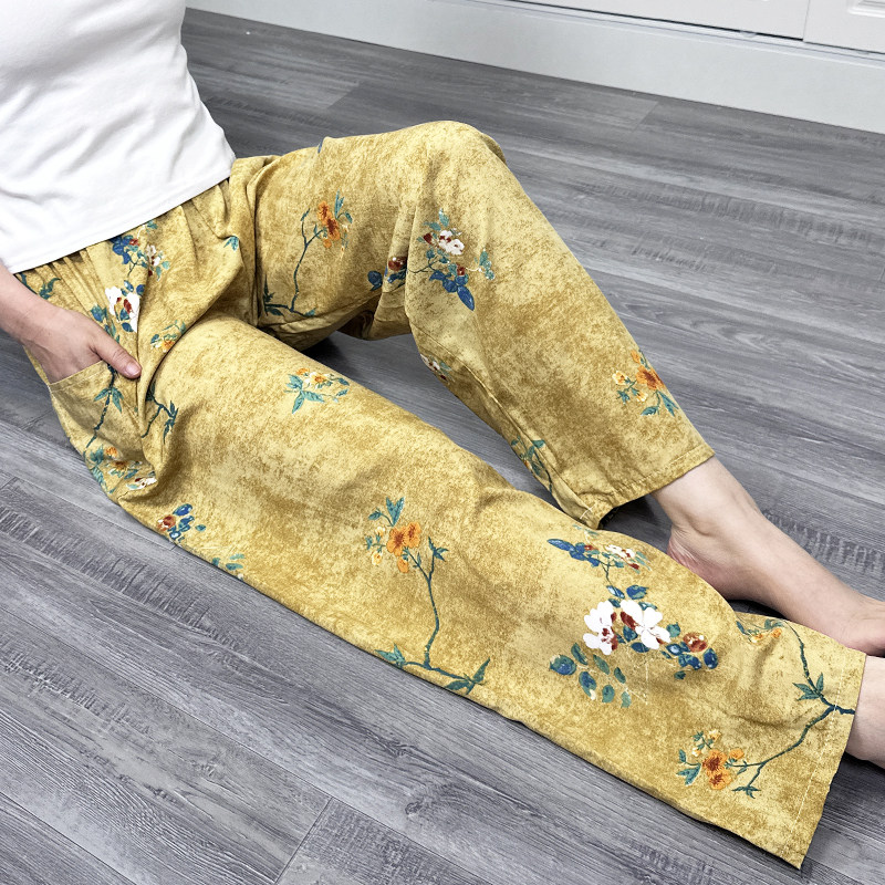 女春夏季 子空调防蚊家居裤 人造棉薄款 外穿九分长裤 休闲裤 棉绸睡裤