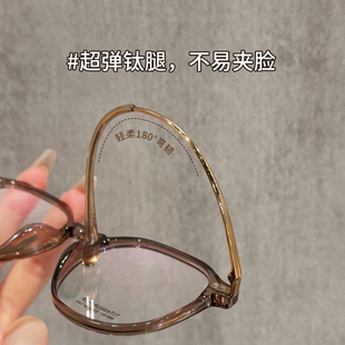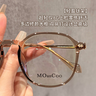 纯钛超轻大框冷茶色眼镜女近视可配度数高级感方圆脸素颜眼睛镜架