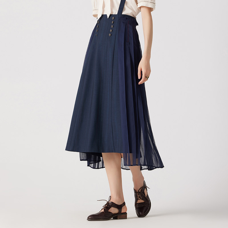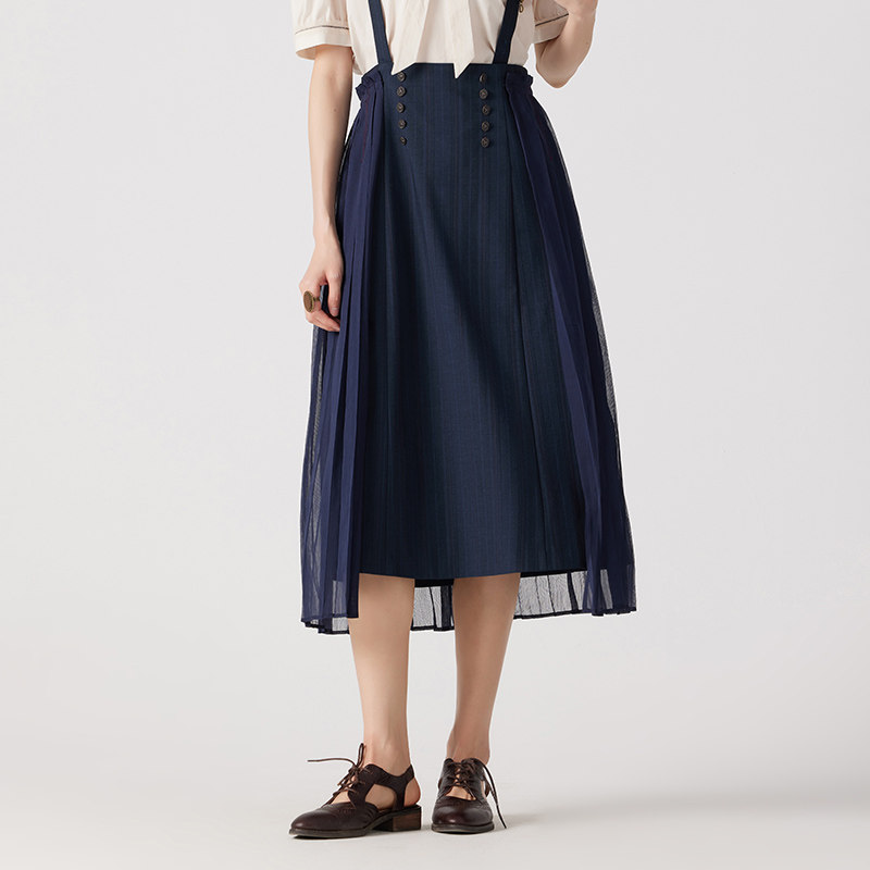 优雅简约藏青色暗纹背带裙DH242M97165D 迪哈利夏新款 HARRY