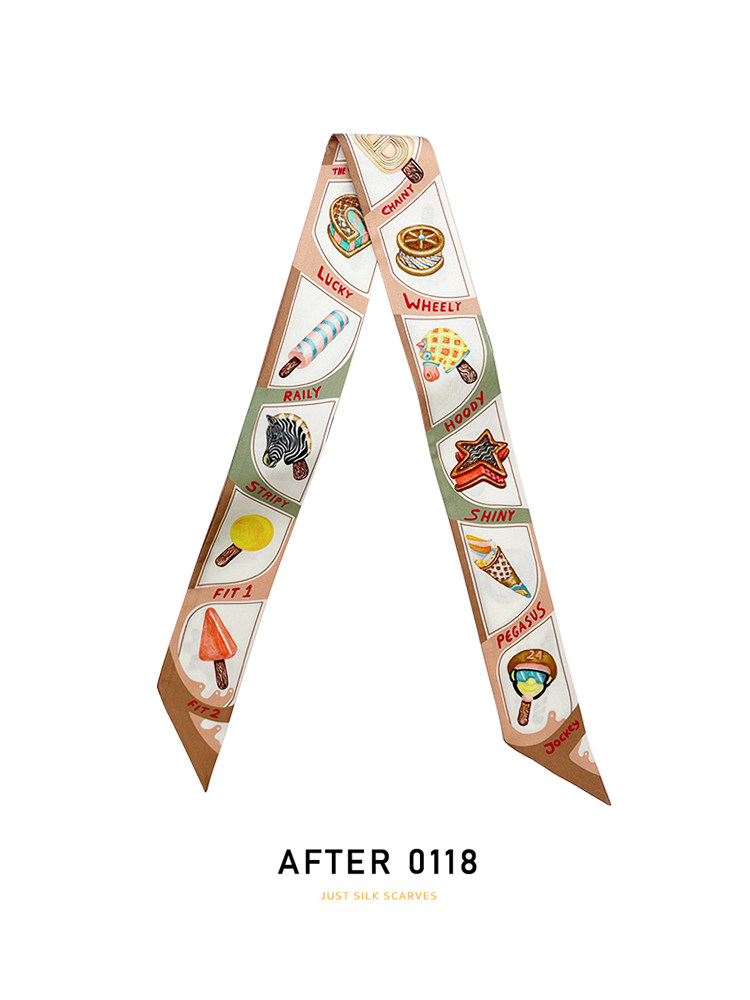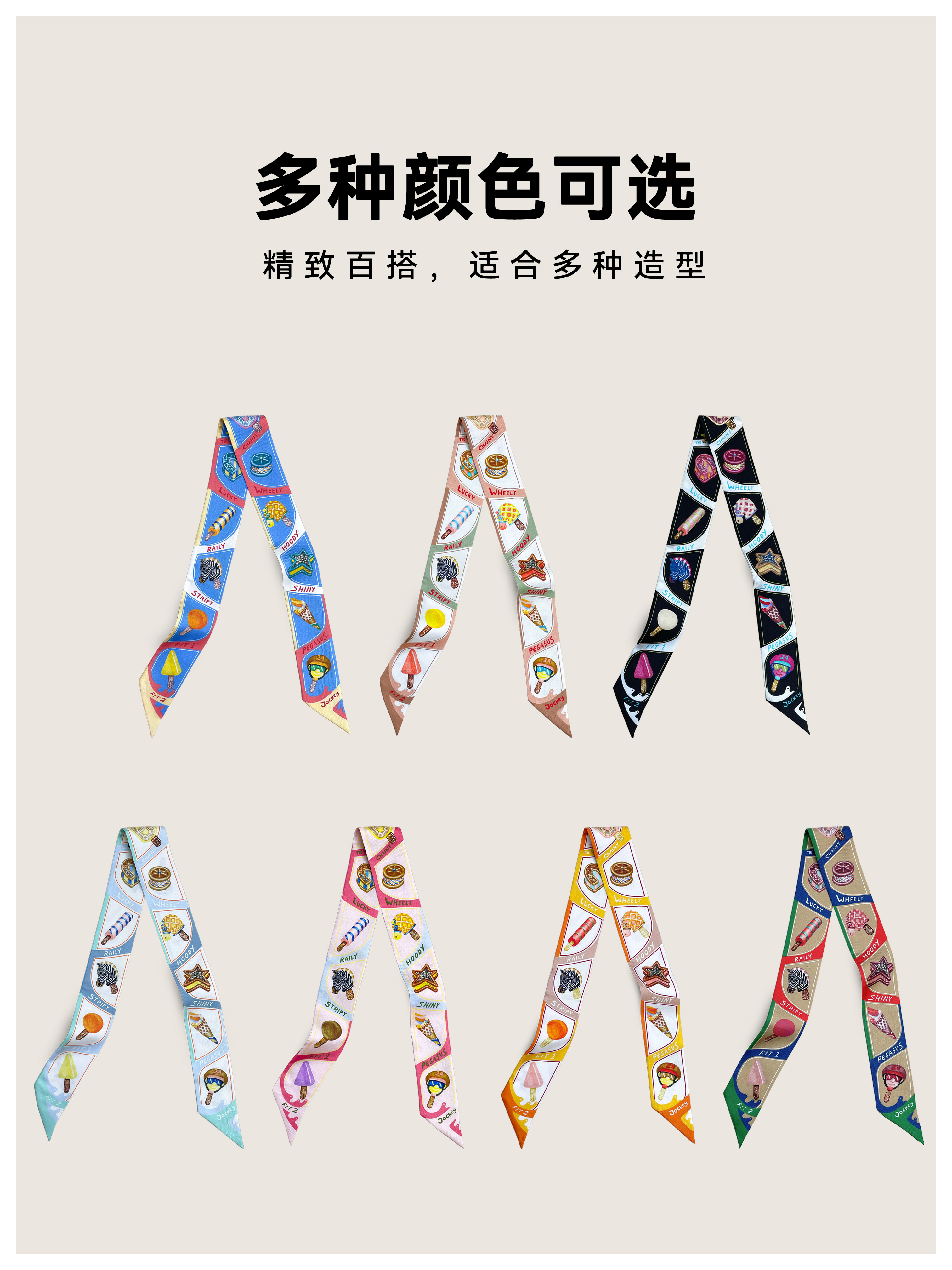 2024新款 18姆米真丝桑蚕丝绑包丝带 趣味冰淇淋twill丝巾适用丝巾