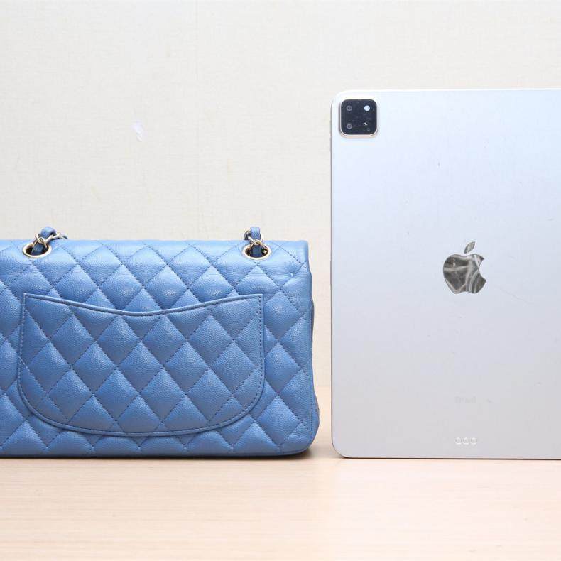香奈儿单肩包CF经典 中古95新Chanel 口盖包蓝色30开牛皮 自营