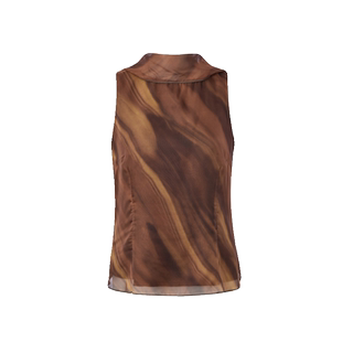 飘带丝巾短款 背心t恤修身 上衣 抽象网纱沙漠印花无袖 UNNNSAD