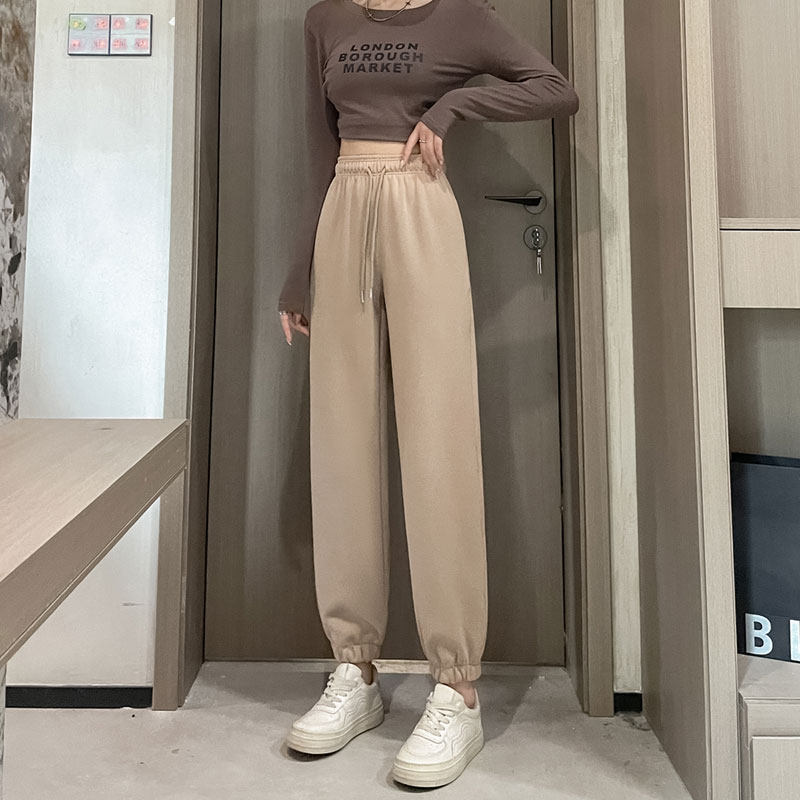 休闲卫裤 女春秋高个子175超长版 加长运动裤 棉质宽松收口束脚大码