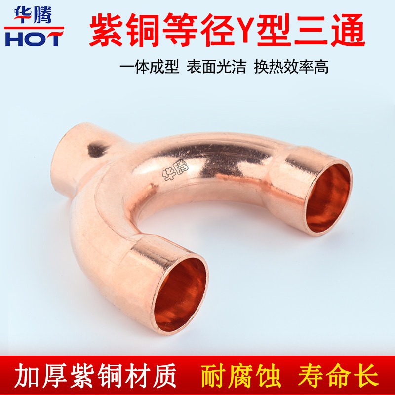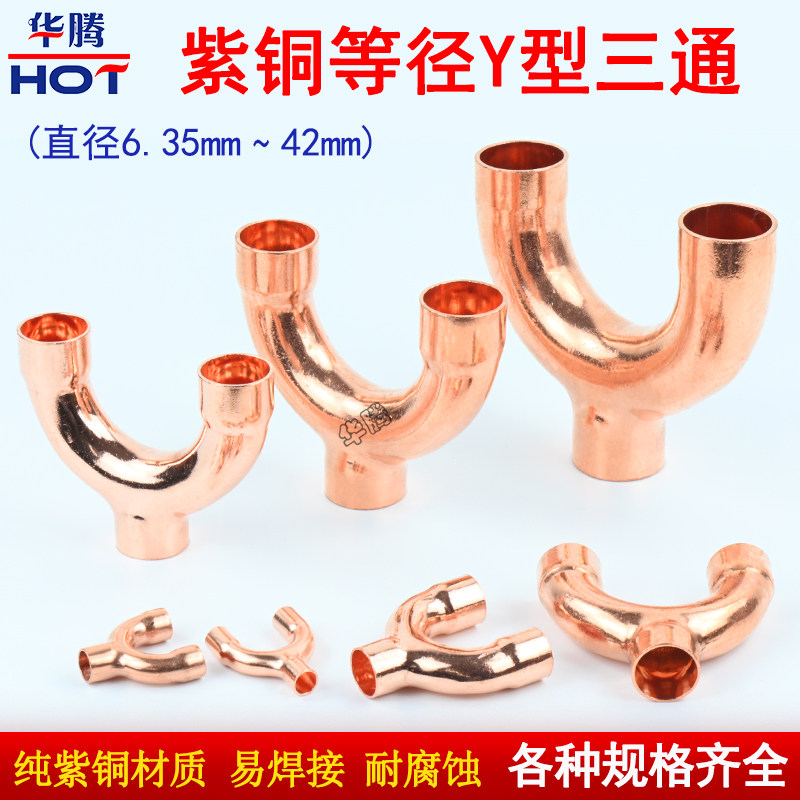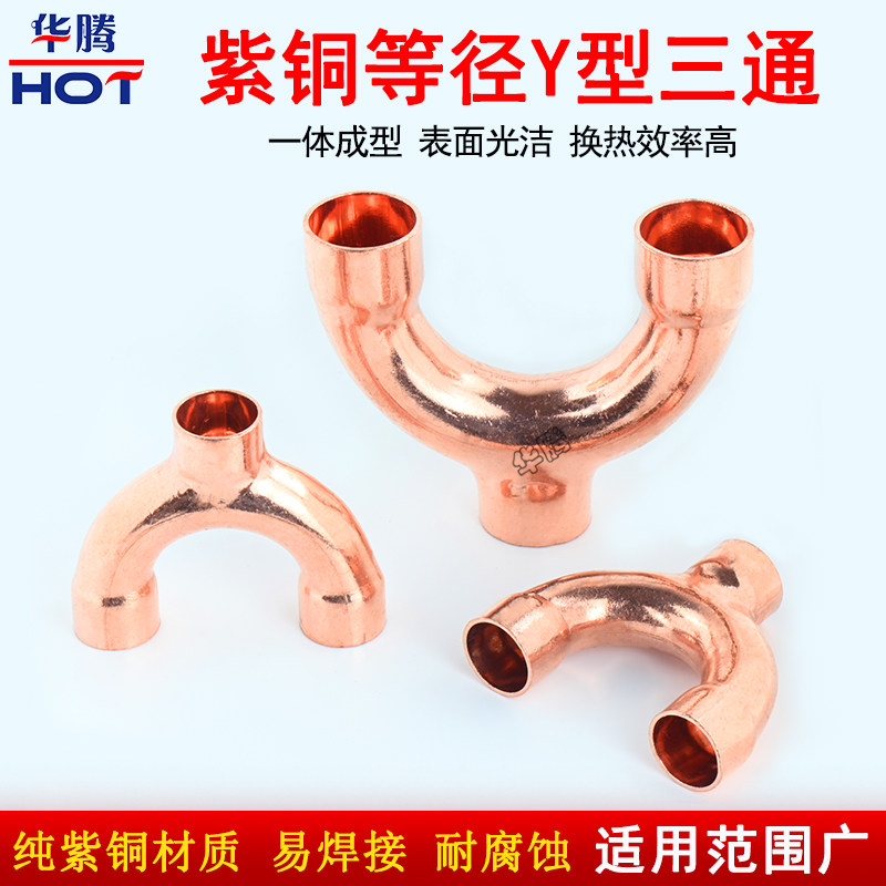 紫铜等径Y型三通焊接紫铜扩口三通加厚树衩接头制冷空调铜管配件