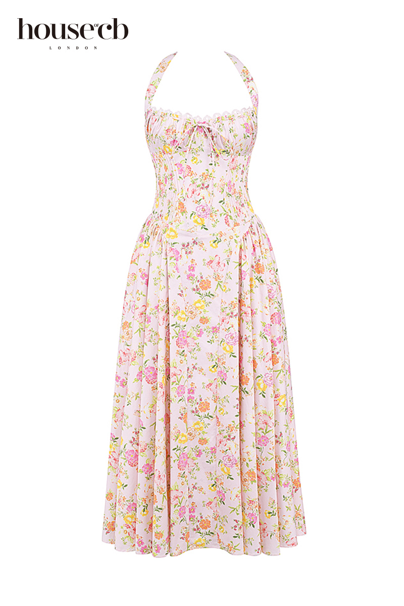 新款 玫粉色长款 法式 早秋连衣裙女印花长袖 裙 领丝绒法式 ZHUYIYI