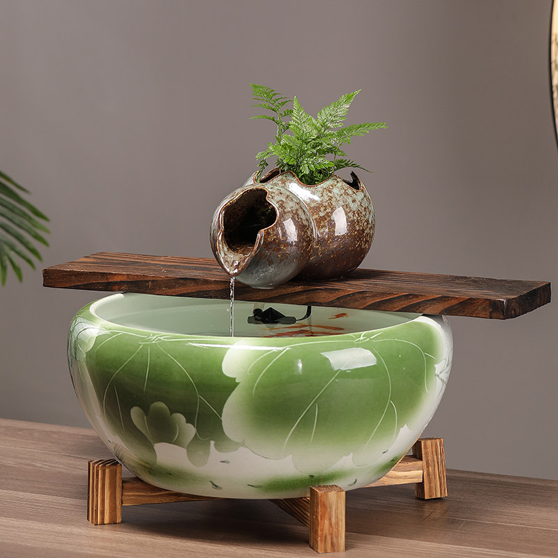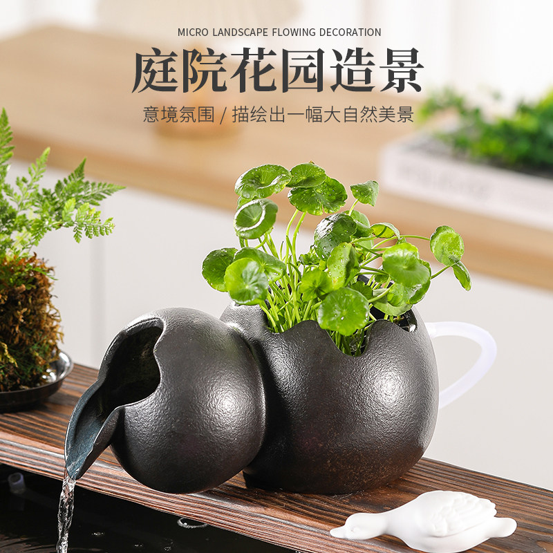 鱼缸造景流水景观瀑布流水循环陶罐户外庭院鱼池水缸过滤摆件全套