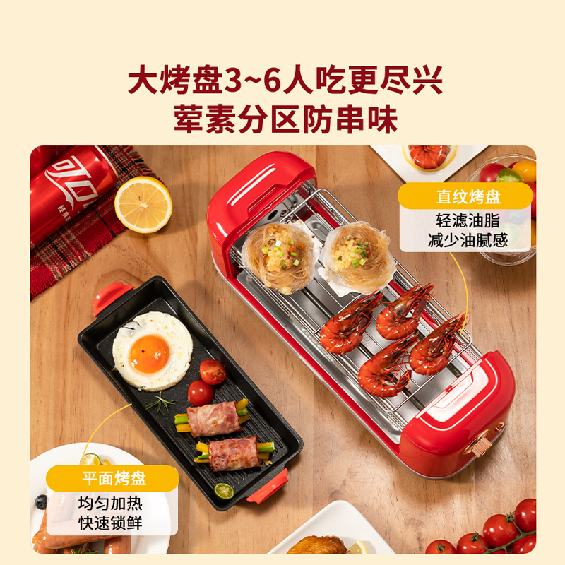 可口可乐电烧烤炉家用无烟烧烤架烤盘烤肠机烤串小型烹饪机料理机