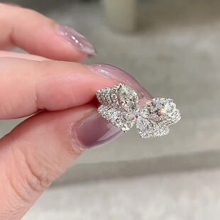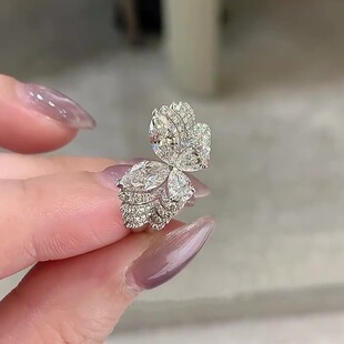 本命年S925纯银优雅层次感满钻幻影蝴蝶戒指女真钻戒蝴蝶多重奏指