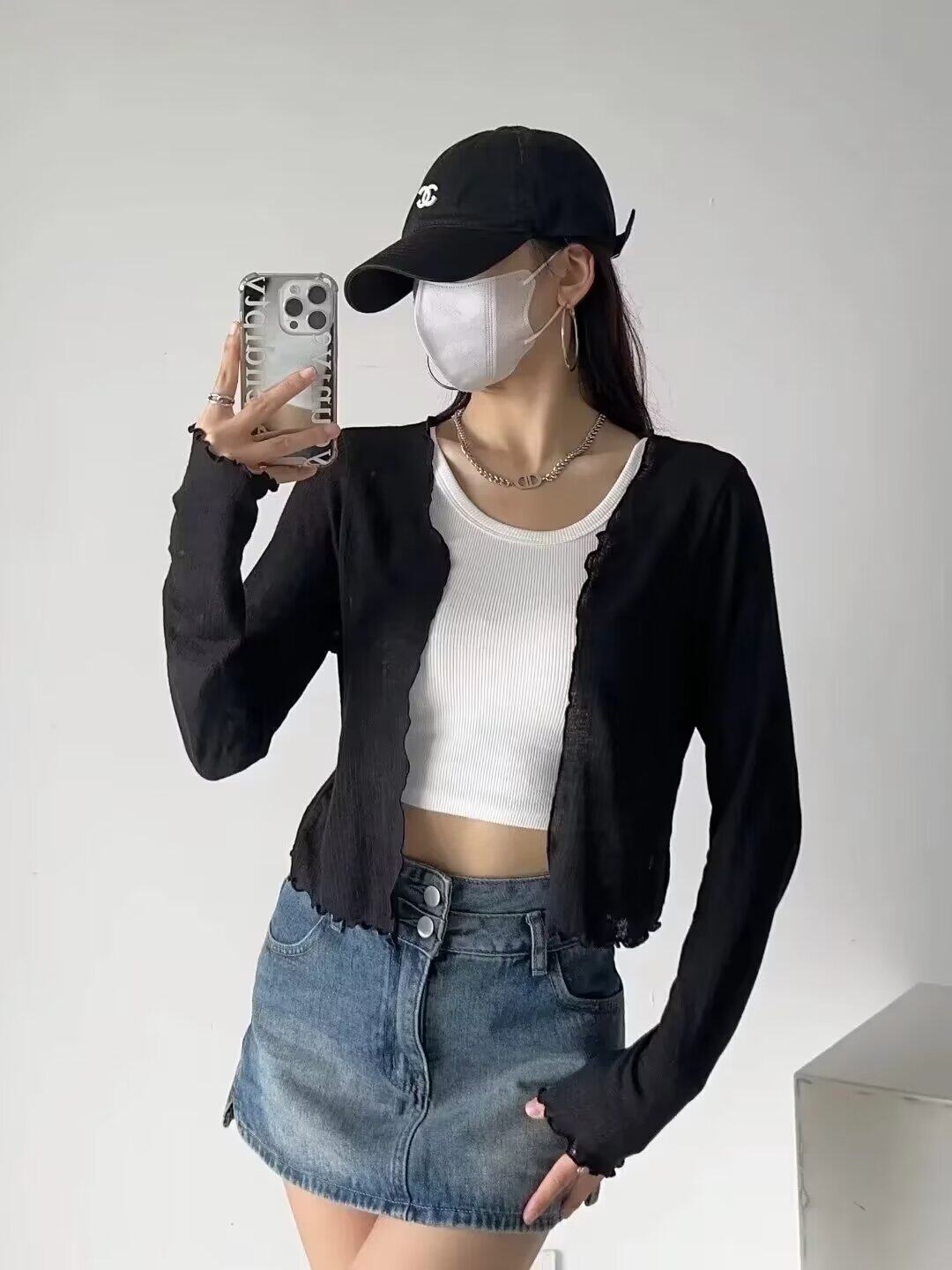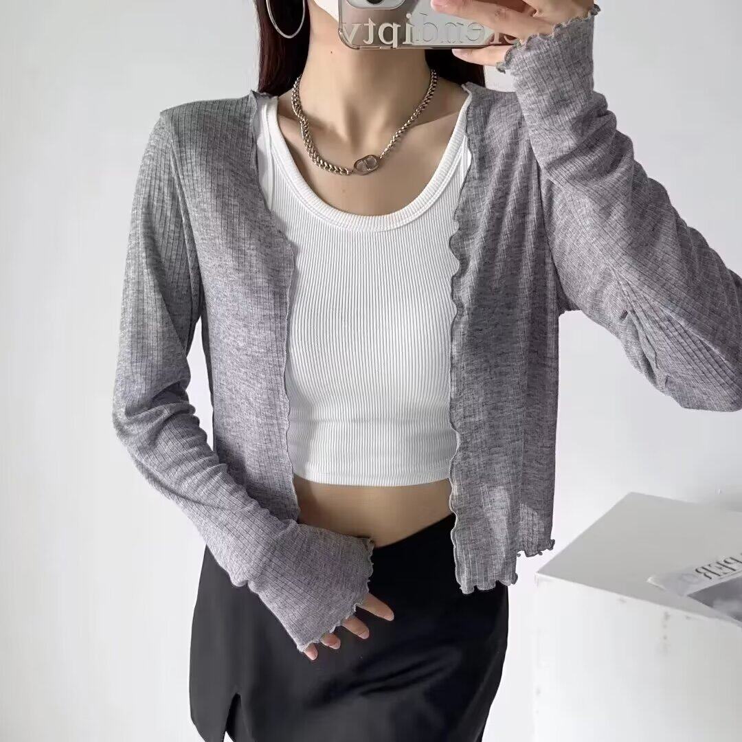 纯色百搭显瘦外搭上衣开衫 夏季 女 短款 CCA自制纯欲风木耳边防晒衫