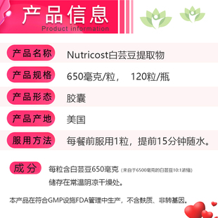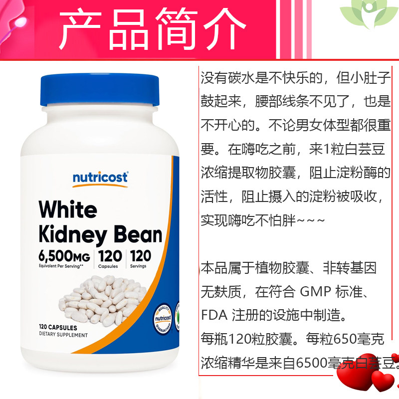Bean Kidney 淀粉碳水无负担美国白芸豆提取120粒Nutricost White
