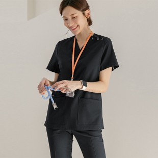 男女洗手衣实验服短款 白大褂口腔医生工作服刷手服黑色弹力 长袖