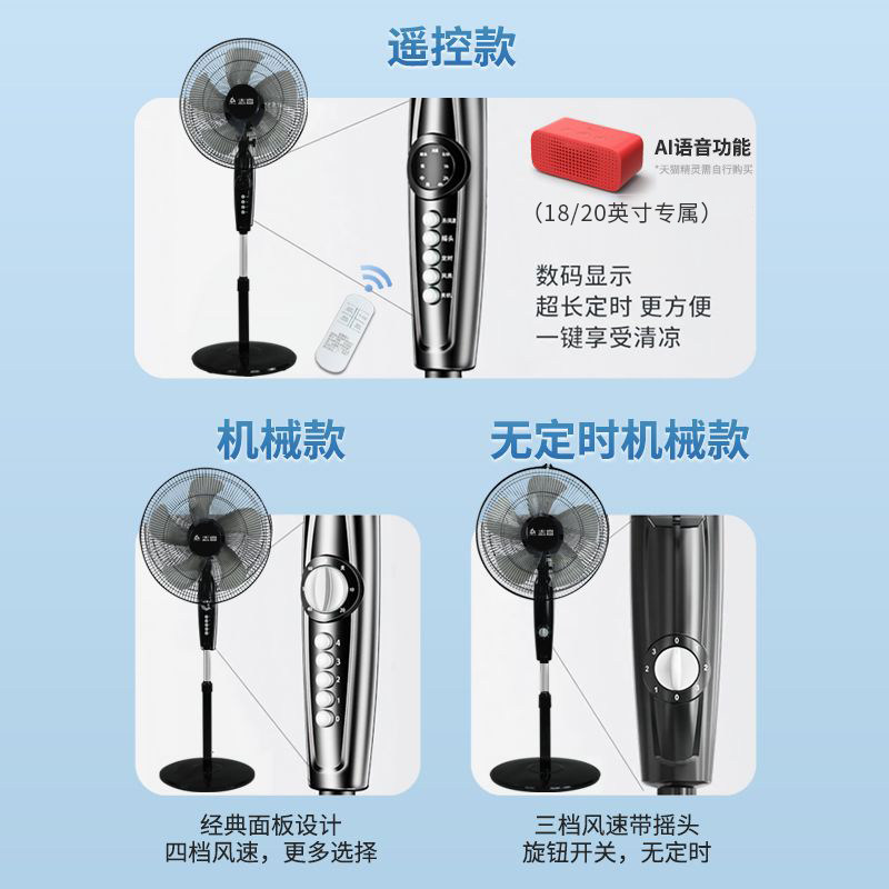 志高家用落地扇大风力立式 电风扇办公卧室遥控摇头扇工业强力电扇