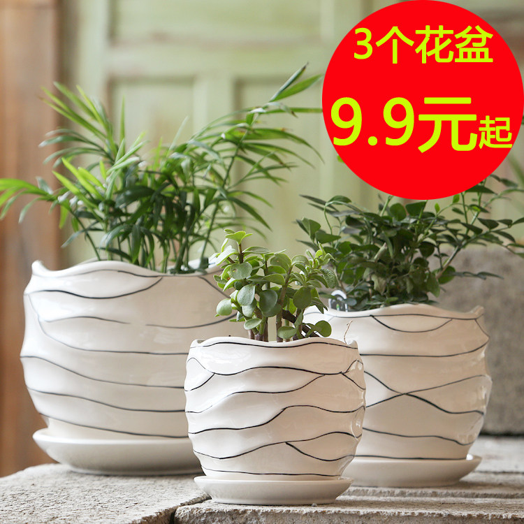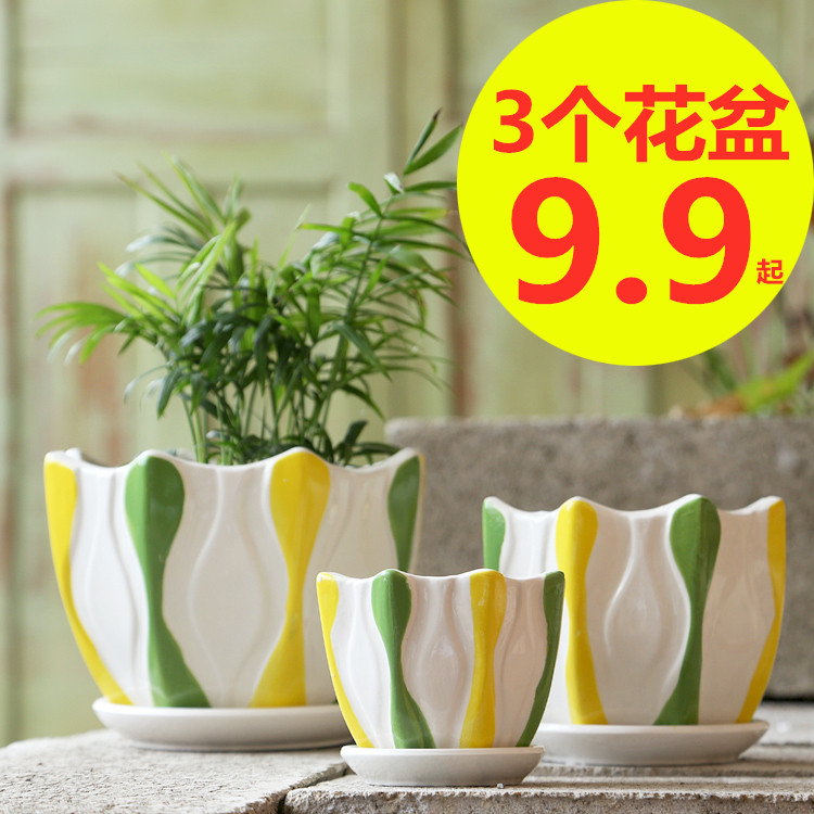简约哑光多彩圆形陶瓷花盆有孔带托多肉种植月季 阳台家用素烧透气