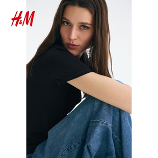 弹力棉质汗布修身 内搭打底衫 T恤1260200 T恤春季 HM女装