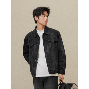 美式 复古设计感原色牛仔外套宽松百搭正肩口袋cleanfit夹克上衣男