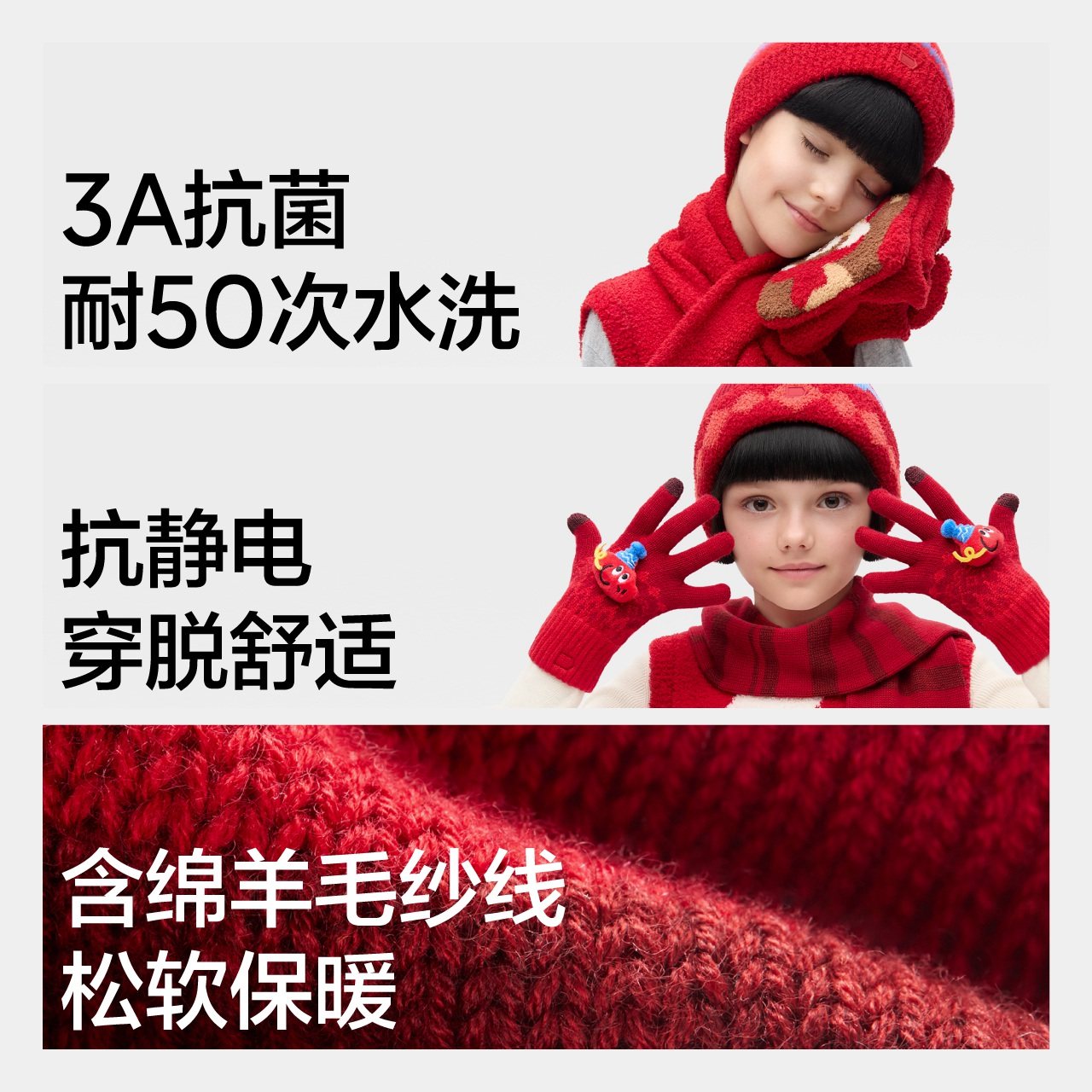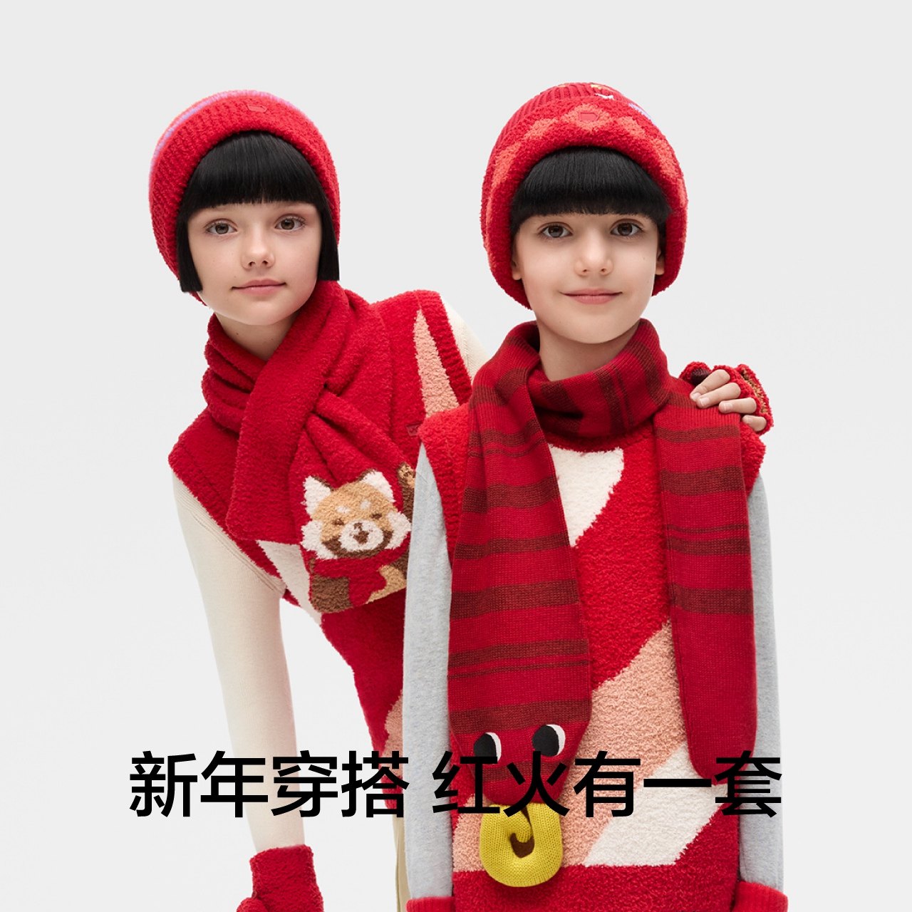 礼盒 蕉内红色计划520Color儿童帽子围巾秋冬节日服配礼盒手套