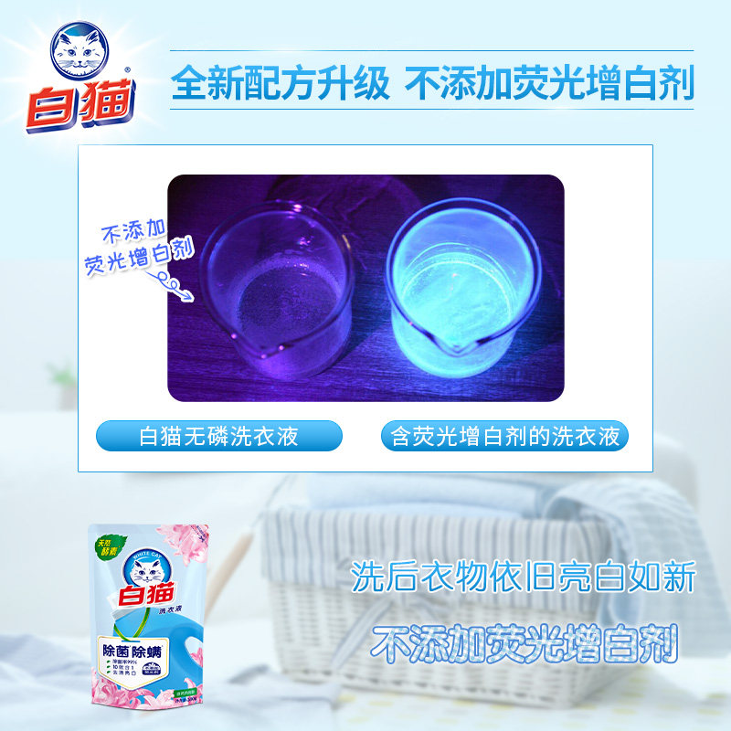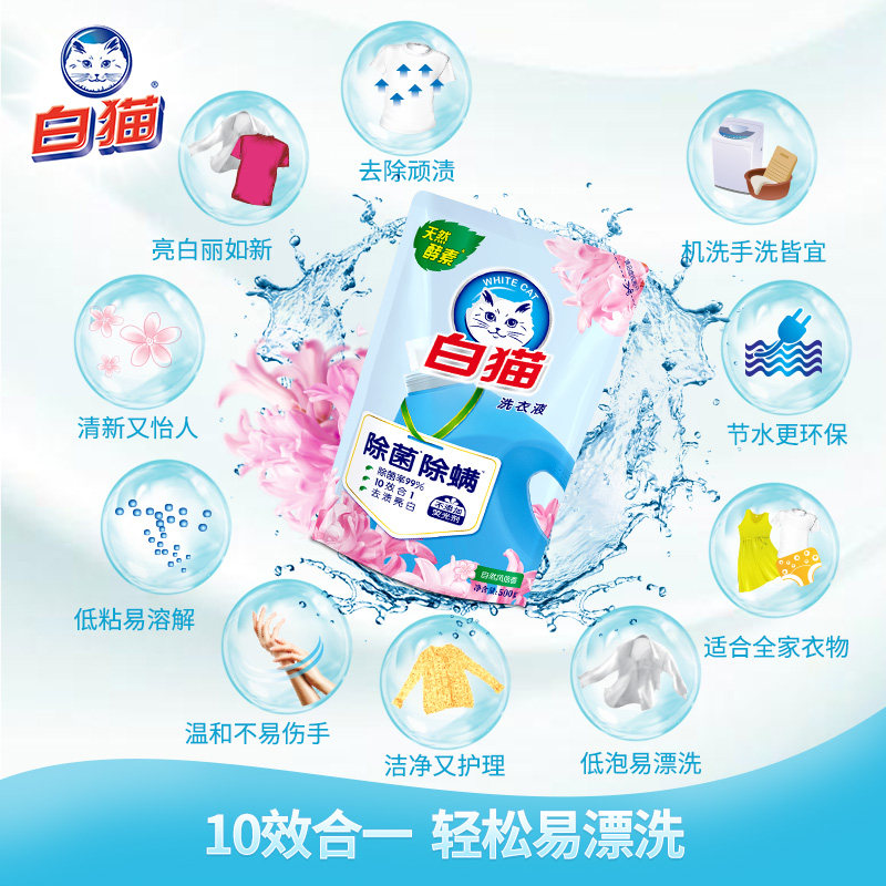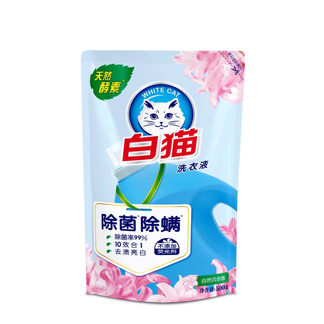 白猫洗衣液酵素除菌除螨去渍易漂亮白留香家用无磷袋装 500g 补充装