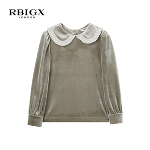 百搭潮流设计感休闲女童丝绒小衫 新款 冬季 RBIGX瑞比克童装