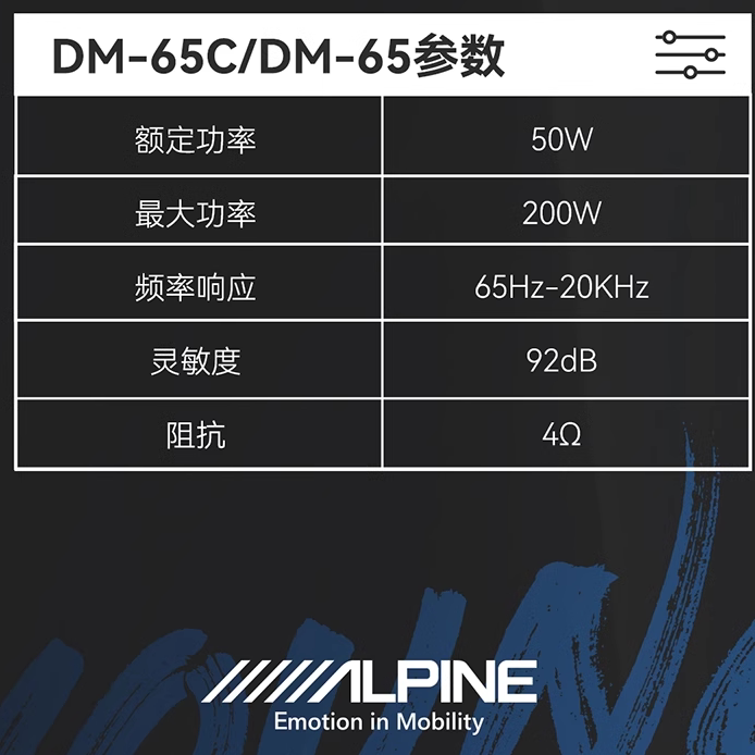 6.5英寸车载音响 65同轴喇叭汽车扬声器套装 阿尔派DM 65C二分频DM