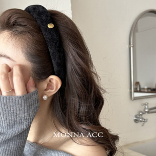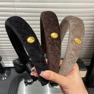 E3744进口复古丝绒发箍高级感字母头箍细腻舒适高颅顶压发发箍