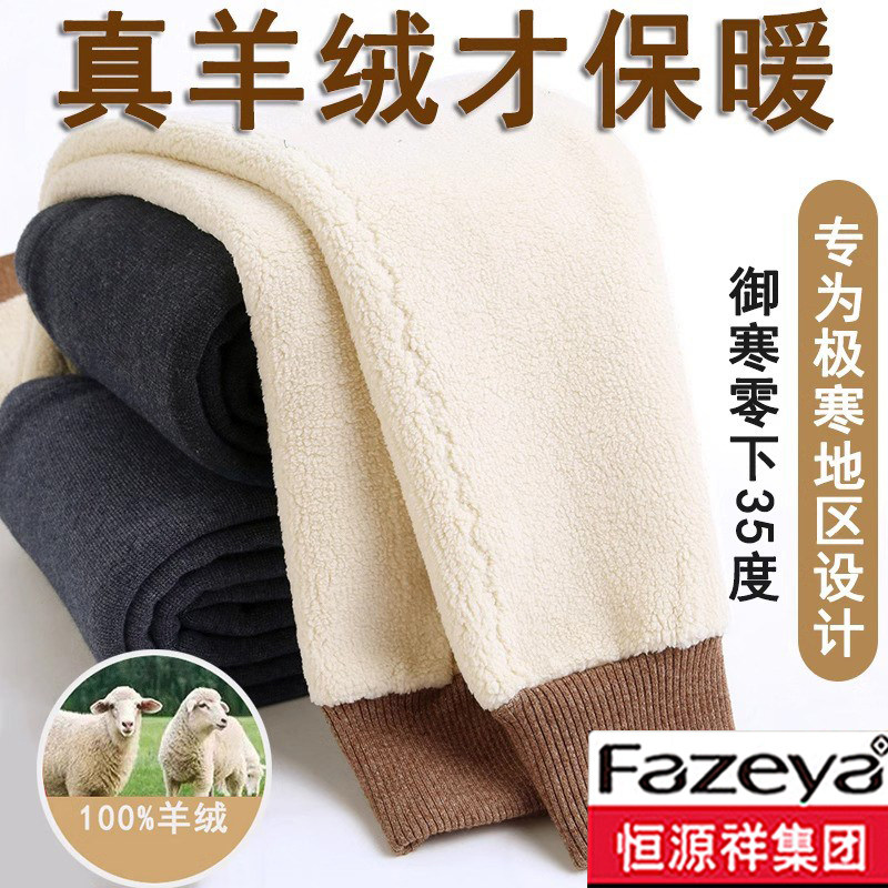 高腰中老年保暖羊羔绒 女棉裤 恒源祥彩羊纯羊绒裤 男加绒加厚羊毛裤