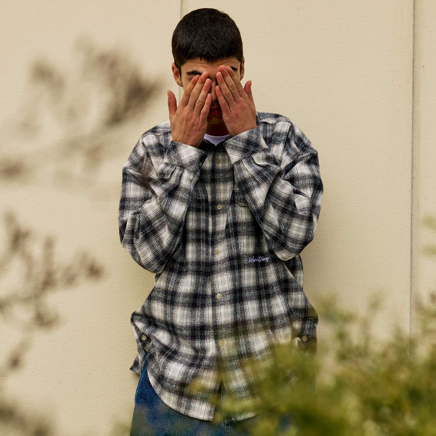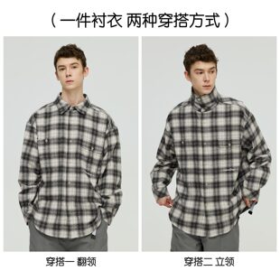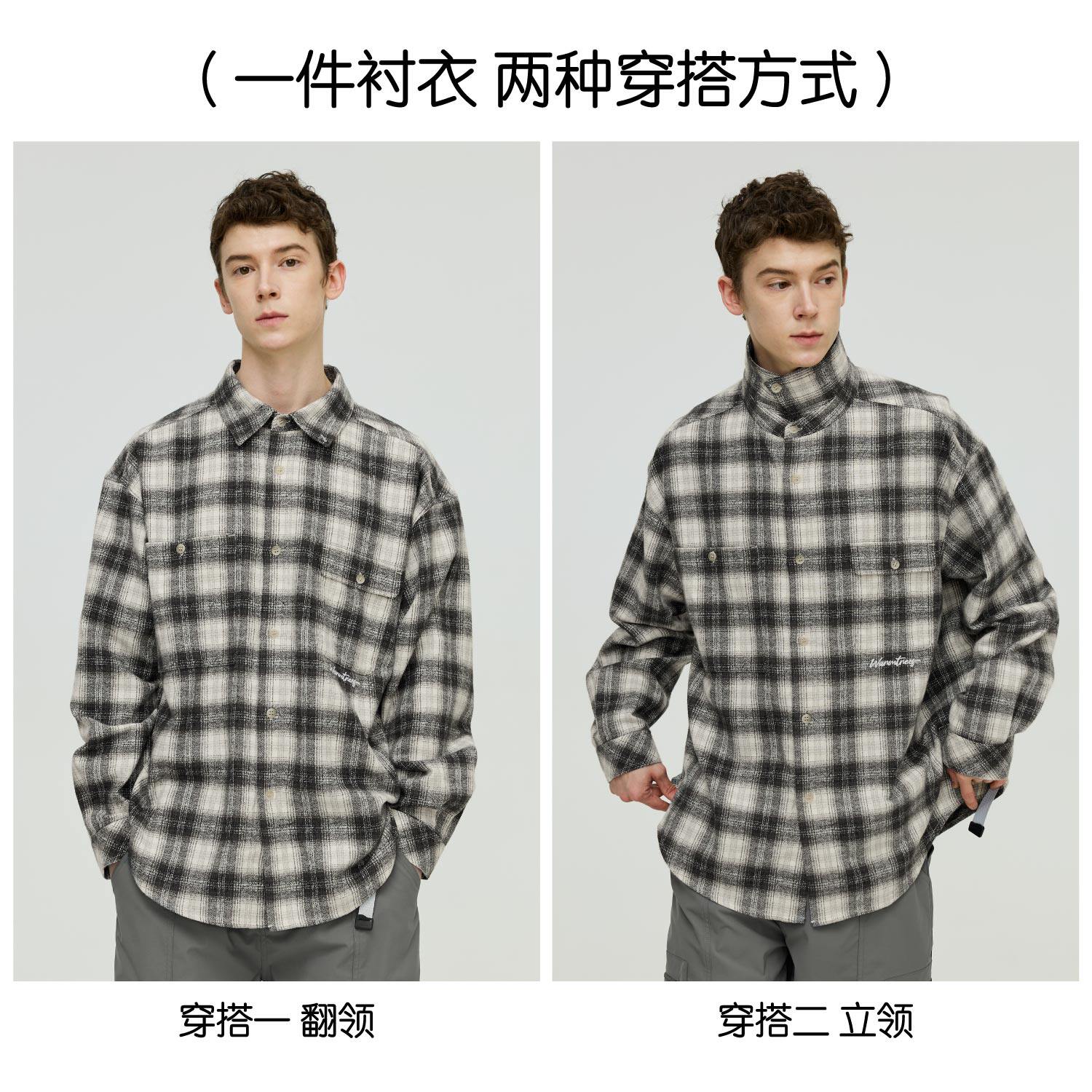 男复古百搭上衣 衬衫 warmtrees 雪花白灰格子长袖