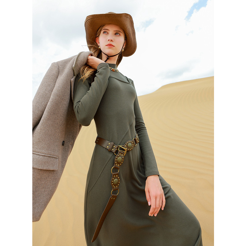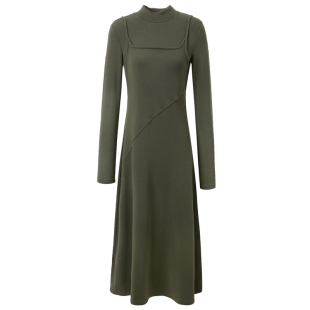 设计感女M 假两件连衣裙半高领收腰A字裙中长修身 三彩2024冬季 新款