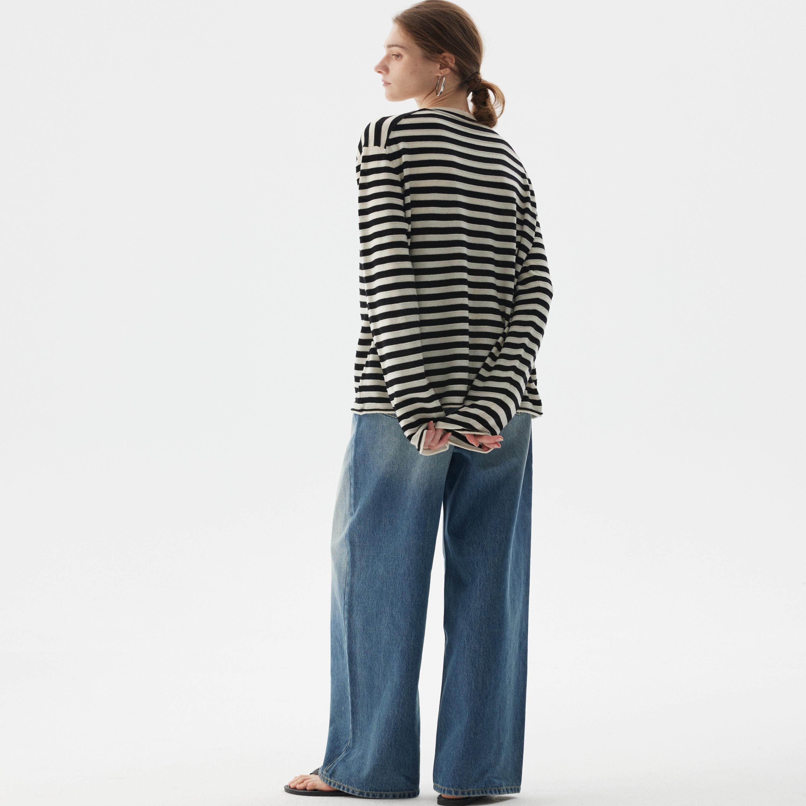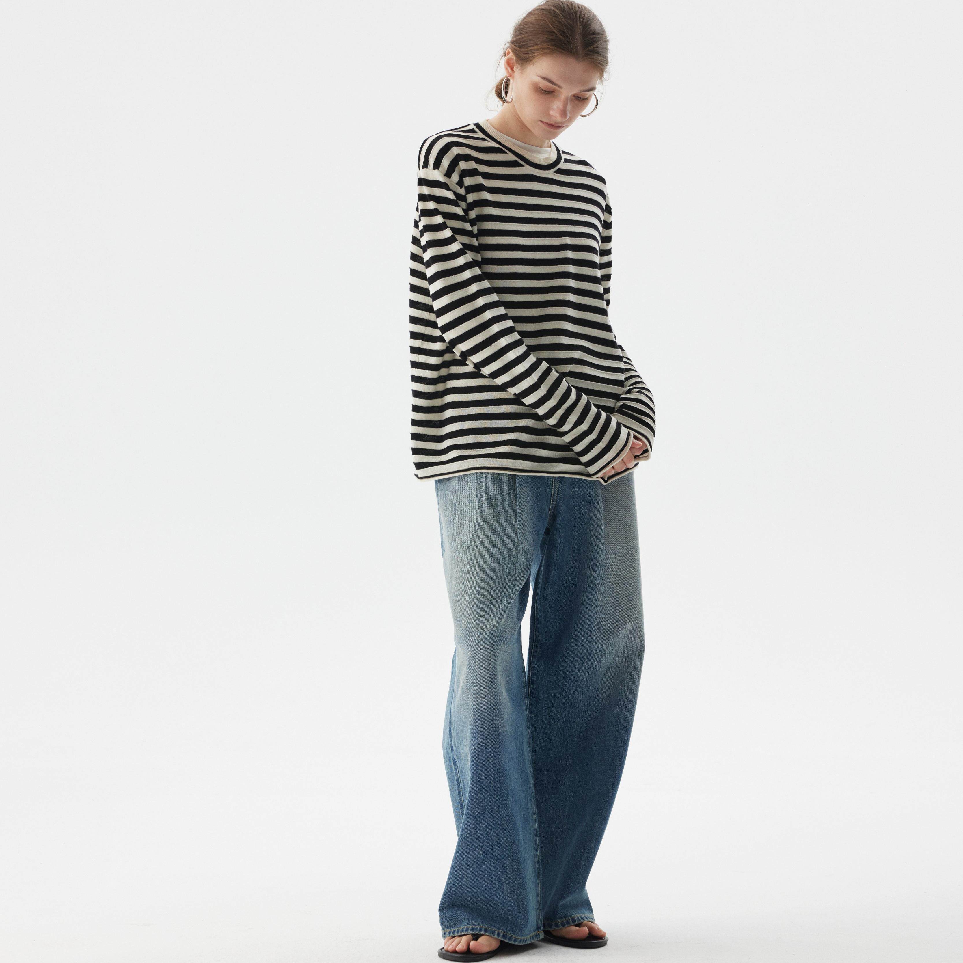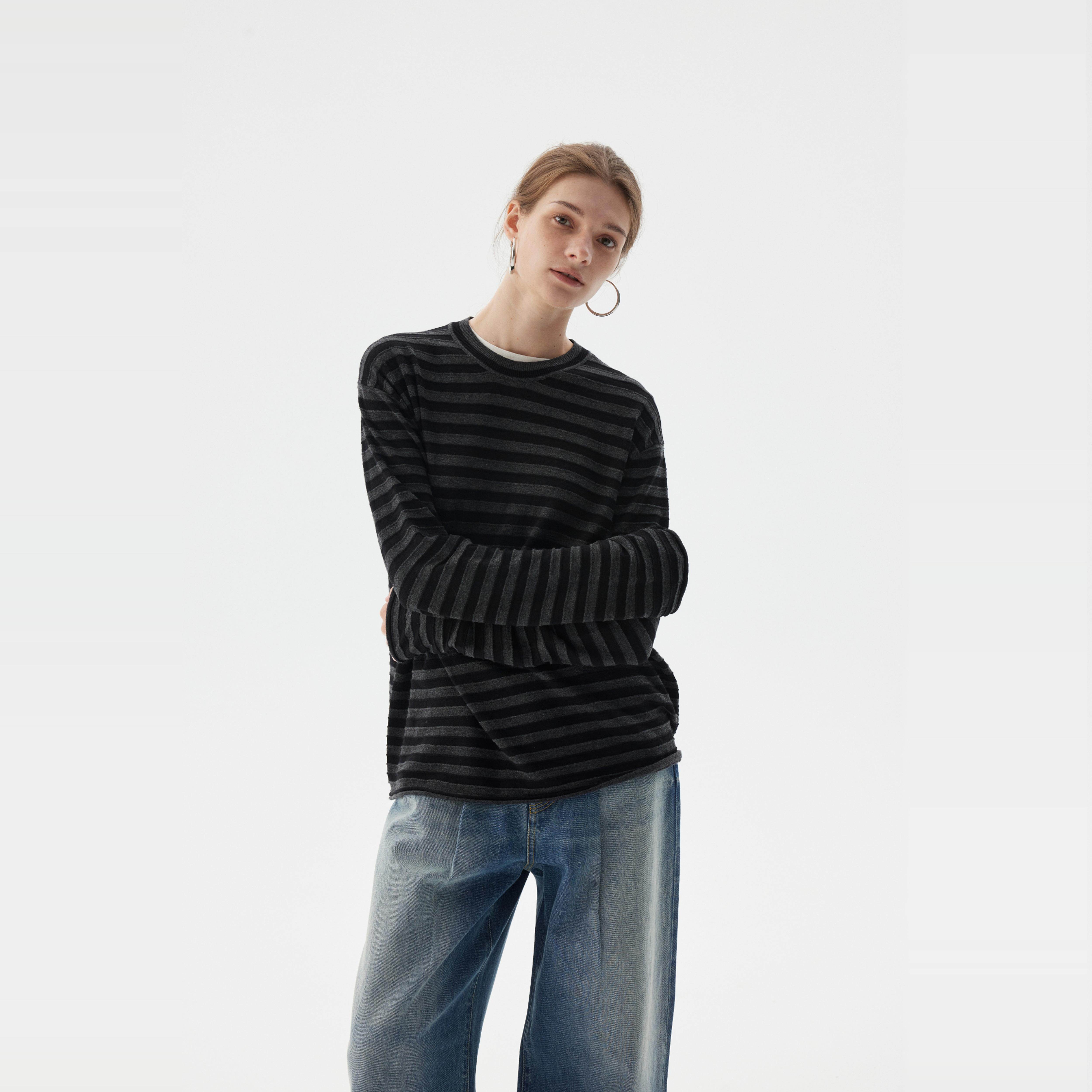 SoftSelf·和煦之墨BF风oversize宽肩廓形设计感显瘦条纹长袖 上衣