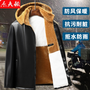 加绒加厚防风保暖防水机车摩托车代驾外卖工作服 套装 男士 皮衣皮裤